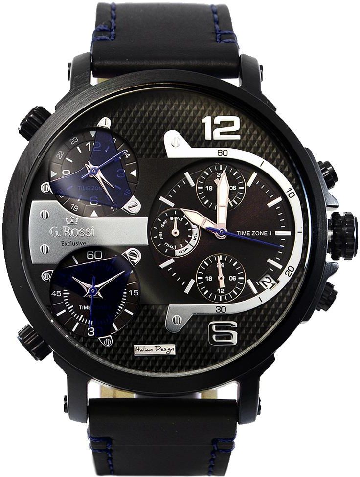 Zegarek G. Rossi: Model ten to mężczyzn ceniących elegancję i prostotę, zegarek wyposażony został w niezawodny japoński mechanizm kwarcowy, który współdziałając z baterią zapewnia bardzo dokładne odmierzanie czasu. Metalowa koperta zegarka została pokryta utwardzaną powłoką IPS/IPG. Całość zamontowana została na skórzanym pasku. Wodoszczelność na poziomie 30m. (3ATM) gwarantuje, że nie trzeba obawiać się drobnych zachlapań. Zdecydowanie nie jest to jednak zegarek przeznaczony do pływania lub nurkowania. Mechanizm: W zegarku osadzony został japoński mechanizm kwarcowy Citizen Miyota. Pasek/bransoleta: Skórzany pasek wykonany ze skóry naturalnej. Koperta: Metalowa, pokryta utwardzaną powłoką IPS/IPG. Szkiełko: Mineralne. Funkcje: - 3 strefy czasowe - dzień miesiąca oraz tygodnia oraz czas 24-godzinny Wodoszczelność: Water Resist 3 BAR (30M) zegarek jest odporny na przypadkowe zachlapania wodą np. podczas mycia rąk. Kolorystyka: Tarcza: kolor czarny, Wskazówki: kolor srebrny + granatowy sekundnik, Koperta: kolor czarny, Pasek: kolor czarny z granatową nicią. Gwarancja: Pisemna 12 miesięcy. Wymiary: koperta: szer. 52 mm, wys. 60 mm tarcza: średnica 45 mm szerokość paska: 24 mm grubość zegarka: 13 mm zapięcie zegarka: max 22 cm Co jest w zestawie? ✔ Oryginalny zegarek G. Rossi. ✔ Instrukcja obsługi w języku polskim ✔ Pisemna gwarancja ✔ Dowód zakupu