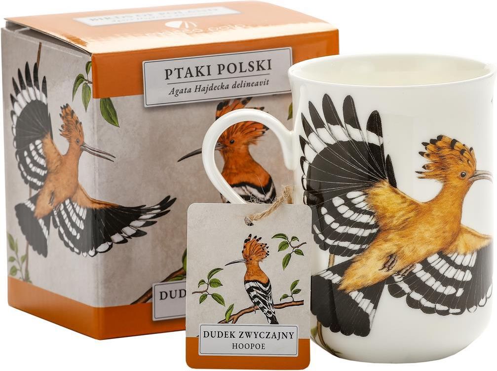 PTAKI POLSKI - AGATA HAJDECKA Dudek, kubek porcelanowy z kolekcji Ptaki Polski z ilustracją autorstwa polskiej ilustratorki Agaty Hajdeckiej. Kubek wykonany z wysokiej jakości połyskującej porcelany. Specyfikacja pojemność: 300 ml materiał: wysokiej jakości porcelana kostna bone china wysokość: …
