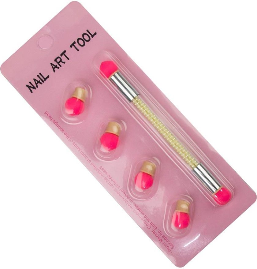 Pędzel Do Ombre + 4 Wymienne Końcówki Dwustronny pędzel do zdobień typu ombre/ aeropuffing lub aplikacji pyłków. Idealny do stworzenia w krótkim czasie zaskakujących zdobień bez utraty czasu - szybko i perfekcyjnie wykonasz bajeczne przejście kolorystyczne lakierami hybrydowymi lub paint gelami Nie zostawia pęcherzyków, brudków, włosków i zapewnia piękny efekt końcowy. Sposób użycia: na czysty pędzel pozbawiony zanieczyszczeń nałóż odrobinę wybranego koloru i przystąp do aplikacji. zacznij cieniowanie od wolnego brzegu i delikatnie stempluj przechodząc do środka zdobienia. wykorzystaj tyle warstw ile potrzebujesz dla idealnego efektu końcowego utwardz a następnie całość zabezpiecz topem. Przyrząd jest wielokrotnego użytku - nie jest to gąbka a silikon więc nie pozostają na nim kolory. Po aplikacji Wystarczy przetrzeć cleanerem a pędzel będzie czysty. Posiada wymienne końcówki.