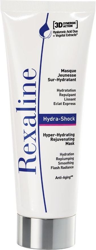 Rexaline - Hydra-Shock - Nadnawilżająca maska młodzieżowa - Maska do twarzy z kwasem hialuronowym przeciwzmarszczkowa, przeciwstarzeniowa i wypełniająca - Wszystkie rodzaje skóry -75ml Producent: Rexaline Rexaline - Hydra-Shock - Hypernawilżająca maska odmładzająca to innowacyjny produkt przeznaczony do intensywnej pielęgnacji skóry. Dzięki unikalnej formule z kwasem hialuronowym, maska nawilża, ujędrnia i wygładza skórę, przywracając jej młody wygląd. Testy kliniczne wykazały znaczące zwiększenie nawilżenia, wygładzenia i blasku skóry. Ta gładka i świeża maska żelowa jest odpowiednia dla wszystkich typów skóry, a jej działanie odczuwalne jest od pierwszego zastosowania. Dzięki swojej intensywnej formule, maska Rexaline Hydra-Shock zapewnia skórze natychmiastowe odpychanie, wygładzenie drobnych linii i ożywienie. Specjalnie opracowana bez parabenów, doskonale sprawdza się w pielęgnacji skóry stresowanej, suchej i odwodnionej. To niezwykle skuteczny produkt, który można stosować zarówno na dzień, jak i na noc, uzyskując widoczne rezultaty. Rexaline - Hydra-Shock - Hypernawilżająca maska odmładzająca to doskonały wybór dla osób pragnących zachować młody wygląd skóry oraz cieszyć się intensywnym nawilżeniem i ujędrnieniem. Dzięki unikalnej kombinacji składników aktywnych, ta maska przeciwstarzeniowa nie tylko odmładza skórę, ale również dodaje jej energii i blasku. Pozwól swojej skórze odbudować się i odzyskać piękny, promienny wygląd dzięki maski Hydra-Shock od Rexaline. Aktywność i zalety: Natychmiast odpycha, wygładza drobne linie i ożywia skórę. Zapewnia blask błysku i uczucie orzeźwiające. Przynosi energię i wzmacnia blask skóry. Testy kliniczne: Nawilżenie [+138%] (1) - Replumping [83%] (2) - wygładzanie [83%] (2) - blask [97%] (2). Badania kliniczne przeprowadzone przez niezależne laboratoria na temat produktu końcowego. Tekstura i elastyczność: Sformułowana bez parabenów, ta świeża i gładka maska żelowa została specjalnie opracowana dla wszystkich typów skóry.