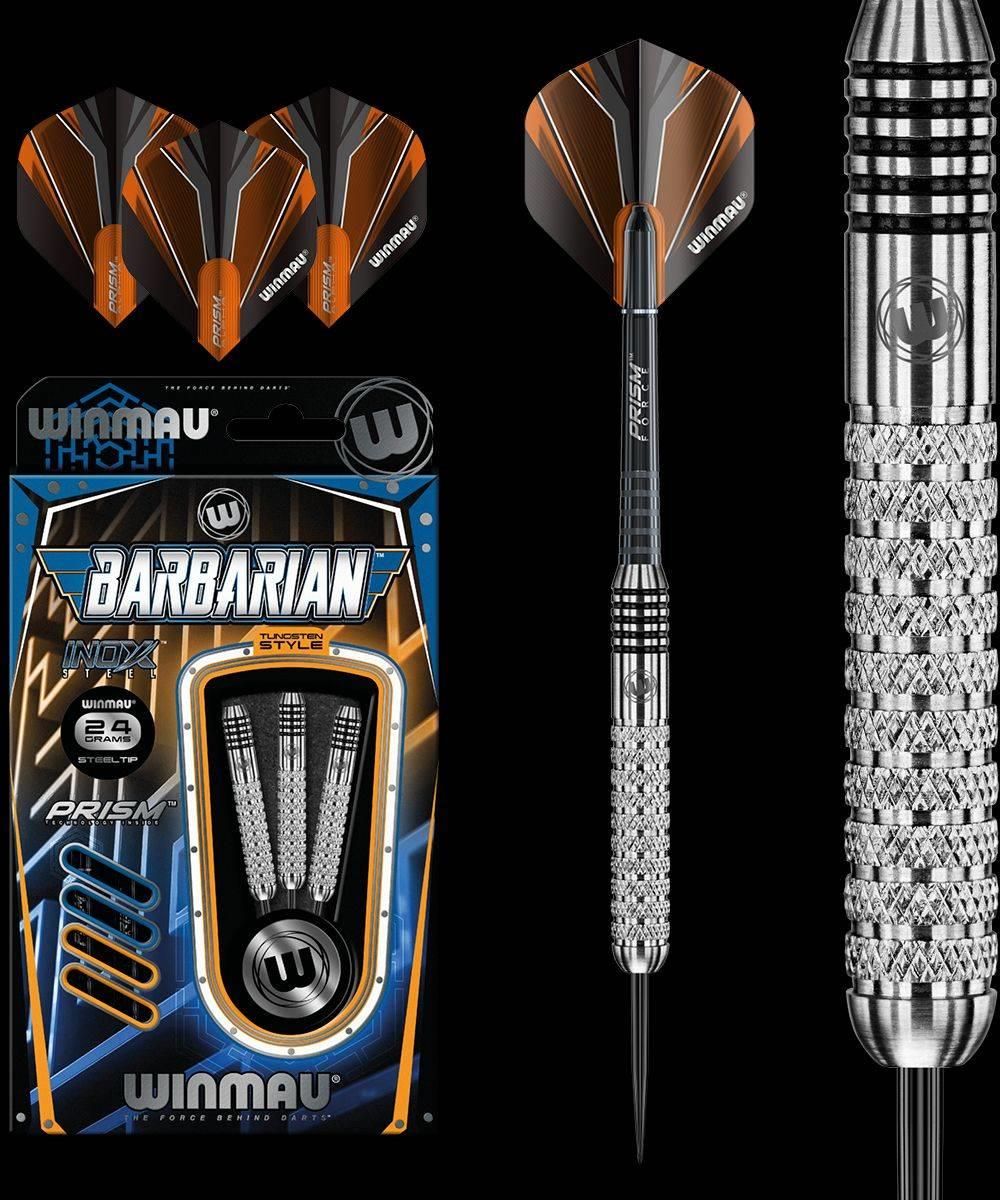 Markowe rzutki WINMAU BARBARIAN, 3 szt. w zestawie, ostry grot, 24 g. Rzutki są przeznaczone do gry na tarczach papierowych i sizalowych.