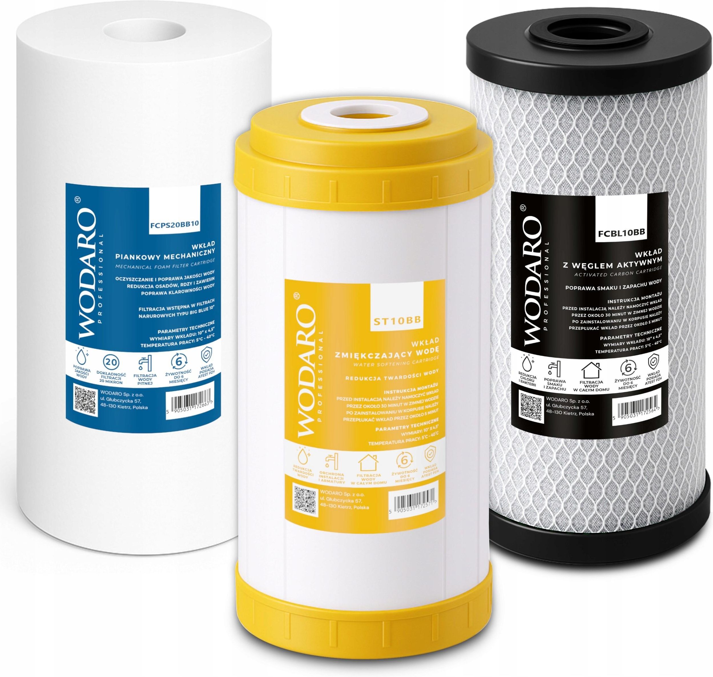 Zestaw Wkładów Filtrów Wody na Cały Dom 3-stopniowy Zmiękczacz BIG BLUE 10" Rydułtowy