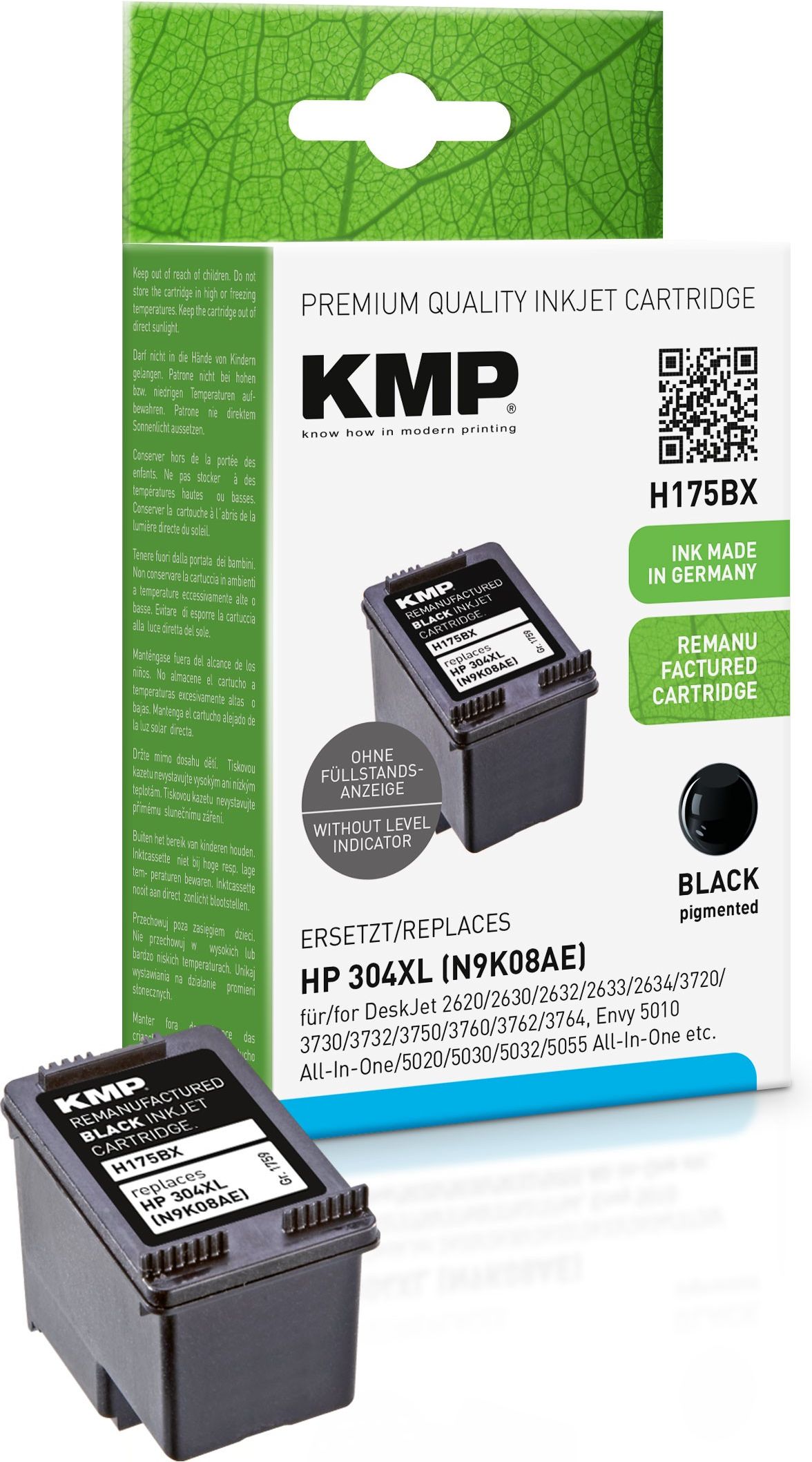 W zestawie otrzymujesz 1x Tusz do HP 304XL BK (13 ml) CZARNY Tusz premium KMP oparty na oryginalnej bazie od HP gwarantuje maksymalną wydajność i bezpieczeństwo druku. Tusz w 100% wyprodukowany w Europie z dożywotnią gwarancją. Dedykowany atrament i precyzyjna głowica zapewniają najwyższą jakość druku, a specjalny klip chroni przed zaschnięciem i rozlaniem, zapewniając 100% bezpieczeństwa głowicy nawet po wielu miesiącach. Parametry Marka: KMP Model: 304XL BK do drukarki HP Kolor: czarny (black) Pojemność: 13 ml Stan: Nowy, gotowy do natychmiastowej instalacji Gwarancja: Dożywotnia Dlaczego warto wybrać markę KMP? W 100% europejska produkcja: Dedykowany atrament sprawia, że wydruk charakteryzuje się ostrym tekstem i głębokim nasyceniem. Realna oszczędność pieniędzy: Technologia wykorzystania OEM (oryginalnej obudowy producenta drukarki) znacząco obniża koszty przy zachowaniu najwyższych parametrów. Bezpieczeństwo i Gwarancja: Produkt objęty jest ochroną aż do całkowitego wyczerpania – gwarantujemy bezproblemową wymianę lub zwrot. Certyfikat CO2: Wybierając ten tusz, redukujesz emisję CO2, co potwierdza oficjalny certyfikat środowiskowy. Tusz w 100% kompatybilny z drukarkami HP DeskJet 2620 HP DeskJet 2630 HP DeskJet 2632 HP DeskJet 2633 HP DeskJet 2634 HP DeskJet 3720 HP DeskJet 3730 HP DeskJet 3732 HP DeskJet 3750 HP DeskJet 3760 HP DeskJet 3762 HP DeskJet 3764 HP Envy 5010 All-In-One HP Envy 5020 HP Envy 5030 HP Envy 5032 HP Envy 5055 All-In-One