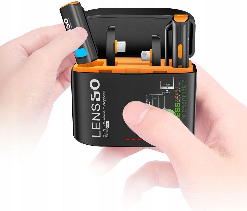 2x Mikrofon Bezprzewodowy Krawatowy W zestawie dwa mikrofony bezprzewodowe oraz odbiornik ze złączem do telefonów posiadających port USB TYPE-C. Ponadto w zestawie dodatkowy kabel ze złączem Mini Jack 3.5 mm, dzięki czemu odbiornik można podłączyć do telefonów i aparatów fotograficznych czy kamer posiadających standardowe wejście na mikrofon typu: Mini Jack 3.5mm Bez niepotrzebnych kabli, z zasięgiem aż do 50 metrów i pewnością czystego oraz wyraźnego dźwięku, zestaw może zostać wykorzystany do nagrywania wywiadów, podcastów, relacji, prezentacji, wideokonferencji i innych itp. Zaawansowane etui ładujące umożliwia ładowanie zestawu umieszczonego wewnątrz przy pomocy kabla USB Czas działania zestawu na w pełni naładowanym akumulatorze wynosi do 6 godzin Mocowanie nadajników na klips Wysokiej jakości dźwięk oraz wygoda podczas nagrań Zestaw jest kompletny i gotowy do rozpoczęcia nagrań od zaraz Produkt firmy LensGo Model: 528C / Skład zestawu 2x Mikrofon bezprzewodowy 1x Odbiornik z wyjściem ze złączem USB-C / USB TYPE-C 1x Solidne etui ochronne z funkcją ładowarki 1x Kabel USB na USB TYPE-C do ładowania etui 1x Kabel Mini Jack 3.5mm na Mini Jack 3.5mm 1x Miękkie etui ochronne Istotne cechy produktu Typ mikrofonu Lavalier - niewielki, niewidoczny, wygodny w użytkowaniu Wielokierunkowa charakterystyka zbioru dźwięku (360 stopni) Mikrofon działa bezprzewodowo, bez długich i poplątanych kabli Zasięg do 50 metrów z nagrywaniem czystego dźwięku Mikrofony umożliwiają rejestrowanie dźwięku w znacznie wyższej jakości niż standardowe wbudowane mikrofony Pasmo przenoszenia jest idealnie zoptymalizowane dla dźwięku ludzkiego głosu Dwa mikrofony w zestawie pozwalają nagrywać dźwięk dwóch osób jednocześnie, niezależnie, dlatego mikrofon polecany jest do wywiadów i nagrań z różnych źródeł Mikrofon doskonale sprawuje się zarówno w zamkniętych pomieszczeniach jak i w plenerze W zestawie Etui pozwalające na ładowanie i przechowywanie zestawu Gotowy do nagrywania od zaraz Zestaw jest kompletny i kompatybilny z telefonami / smartfonami wyposażonymi w port USB-C / USB TYPE-C aparatami / lustrzankami i wszystkimi innymi urządzeniami posiadającymi złącze mikrofonowe - Mini Jack 3.5 mm Mikrofon dedykowany jest do urządzeń posiadających wsparcie OTG. Uwaga! Wybrane modele telefonów nie wykrywają automatycznie urządzeń zewnętrznych. Wtedy konieczne jest ręczne włączenie w ustawieniach telefonu obsługi urządzeń zewnętrznych, takich jak mikrofony. Bezprzewodowy zasięg 50 metrów Jak to działa? Wystarczy podłączyć nadajnik z zestawu do portu USB TYPE-C lub Mini Jack 3,5mm w urządzeniu. Następnie włączamy mikrofon i możemy korzystać z jego możliwości - urządzenie jest gotowe do pracy. Szybko i prosto, bez aplikacji, kabli i łącza bluetooth. Wszystko czego potrzebujemy znajduje się w zestawie. Nowoczesna technologia pozwala nam nagrywać czysty dźwięk w zasięgu do 50 metrów. Czysty dźwięk Za czystość i wyrazistość nagrywanych dźwięków odpowiada odbiór dźwięku przestrzennego 360 stopni. Mikrofon rejestruj dźwięk z każdej strony. Dźwięk odbierany przez mikrofon jest czysty, pozbawiony niepożądanych i przeszkadzających zakłóceń. Głos osoby mówiącej do mikrofonu jest wyraźny, bardzo dobrej jakości bez odgłosów z otoczenia, nawet w hałaśliwym pomieszczeniu. Mikrofon wyposażono w bardzo cienką membranę, decydującą o małej masie układu drgającego. Dzięki temu mikrofon bardzo dobrze odzwierciedla przebiegi impulsowe oraz przenosi równomiernie szerokie pasmo częstotliwości. Etui z funkcją ładowania Etui pełni funkcję ochronną oraz zasilającą, jest ładowarką dla mikrofonów, a do ładowania służy kabel USB z zestawu. Wystarczy umieścić wewnątrz etui cały zestaw lub pojedyncze elementy i podłączyć je do źródła zasilania poprzez kabel USB. Czas potrzebny na nadawanie zestawu wynosi około 1h. Każdy element ładowany jest niezależnie w etui. Przy umieszczeniu kilku elementów czas ładowania się nie zwiększa. Etui jest niewielkich rozmiarów, poręczne i lekkie, możemy je przenosić w torebce czy nawet kieszeni. Znajdujące się wewnątrz mikrofony są w pełni bezpieczne i chronione przed uszkodzeniem. Wygodny w użyciu klips Mikrofony posiadają specjalny klips, który pozwala na ich zamocowanie niemal wszędzie, np. do kołnierzyka koszuli lub marynarki i tym samym uwalnia ręce. Ze względu na niewielki rozmiar, mikrofon jest niemalże niezauważalny. Specyfikacja Typ: lavalier Kierunkowość: wielokierunkowy Zakres częstotliwości: 2.4G Złącze wyjściowe: USB TYPE-C / Mini Jack 3.5 mm Zasięg transmisji: 50m Stosunek sygnału do szumu: >=96dB Czułość: -38,0dB Czas pracy mikrofonu po pełnym naładowaniu: ok 6 godzin Zasilanie: wbudowane akumulatory - 170 mAh (każdy z 3 elementów posiada niezależny akumulator) Ładowanie: etui z funkcją ładowania (wystarczy podłączyć etui do portu USB urządzenia zasilającego lub do ładowarki sieciowej) Materiał wykonania: ABS Antena: Antena ceramiczna Napięcie ładowania: 5V Kompatybilność: smartfony, kamery, aparaty z portem USB TYPE-C / USB-C lub urządzenia z portem Mini Jack 3.5mm Zestaw współpracuje m.in. z Nikon Zfc Nikon Z30 Nikon Z50 Canon M200 Canon M50II Canon M6 Sony a7c Sony a7c2 Sony ZV-1 Sony ZV-E10 Sony ZV-E1 Fujifim XS-10 Fujifim XS-20 Fujifim X100V Fujifim XT30II iPhone 15 iPhone 15 Plus, iPhone 15 Pro iPhone 15 Pro Max iPhone 16 iPhone 16 Plus iPhone 16 Pro iPhone 16 Pro Max iPhone 14Pro Max iPhone 14 Pro iPhone 14 Mini iPhone 14 iPhone 14 Plus iPhone 13 Pro Max iPhone 13 Pro iPhone 13 Mini iPhone 13 iPhone 12 Pro Max iPhone 12 Pro iPhone 12 iPhone 11 Pro Max iPhone 11 Pro iPhone 11 iPhone XR XS MAX iPhone 7 iPhone 7 Plus iPhone 8 iPhone 8 Plus iPhone X iPhone Xr iPhone Xs iPhone Xs Max iPhone SE 2020 iPhone SE 2022 Uwaga! Telefony, uchwyty na telefon i poz