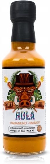 Gwiazdą Sosu Dziki Bill HULA jest mango, będące podstawą jego starannie wyreżyserowanego smaku. Jedząc go poczujesz rozlewające się po całym ciele ciepło i przyjemność – jakbyś wystawił/a twarz do słońca, żeby ogrzało Cię po wyjątkowo upierdliwej zimie. Papryczki Habanero utrzymają ten efekt jeszcze dłużej. Płynne słońce, uśmiech w butelce, pigułka szczęścia, kurczaczek cudaczek, ulubieniec tłumów! Spróbuj również ostrzejszej wersji Hula X Objętość: 200 ml Skład: Pulpa mango (mango, kwas cytrynowy), ocet jabłkowy, marchew, cukier, sól, Habanero (susz). Termin przydatności: 450 dni od daty produkcji