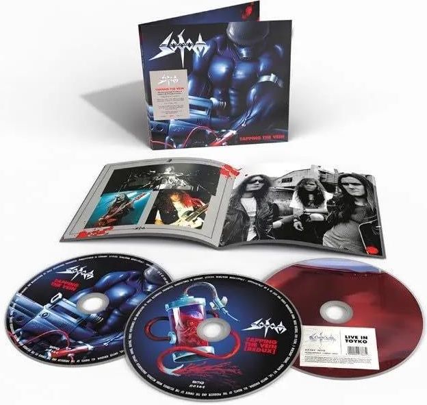 Sodom - Tapping The Vein (3CD) Sodom to niemiecki zespół thrash metalowy, założony w Gelsenkirchen w 1981 roku i uważany za jednego z czterech największych zespołów thrash metalowych, obok Kreator, Destruction i Tankard. Przez 43 lata swojej kariery wydali siedemnaście albumów studyjnych i nieustannie koncertują na całym świecie, zdobywając rzesze oddanych fanów na wyprzedanych festiwalach i w klubachTo reedycja ich piątego albumu, Tapping The Vein, który pierwotnie ukazał się w 1992 roku i jest uznawany za jeden z najlepszych w ich obszernym kataloguOryginalny album został zremasterowany pod nadzorem byłego gitarzysty Andy'ego Bringsa, który stworzył również zupełnie nowy remiks albumu z kilkoma dodatkowymi, wcześniej niepublikowanymi nagraniami studyjnymi z sesji albumowych.• Potrójna edycja CD zawiera zremasterowany album studyjny, remiks i koncert z Tokio z 1992 roku.Lista utworów:CD 1: Tapping The Vein (2024 remaster)Body PartsSkinned AliveOne Step over the LineDeadlineBullet in the HeadThe CripplerWachturmTapping the VeinBack to WarHunting SeasonReincarnationCD 2: Tapping The Vein (Remix) wcześniej niewydaneBody PartsSkinned AliveOne Step over the LineDeadlineBullet in the HeadThe CripplerWachturmTapping the VeinBack to WarHunting SeasonReincarnationCD 3: Live In Toyko 1992 wcześniej niewydaneSodomy & LustAn Eye For An EyeOne Step Over The LineDeadlineAgent OrangeSkinned AliveShellfire DefenseThe CripplerBullet In The HeadWachturmBody PartsThe Kids Wanna RockBody Parts (Alt. Remix Version)Wachturm (Alt. Remix Version)Reincarnation (Alt. Remix Version) Nazwa zespołu: Sodom Nazwa albumu: Tapping The Vein Rok albumu: 1992 Rok wydania: 2024 Format nośnika: 3CD Format okładki: Digipack Numer katalogowy: 6407803 Gatunek: Rock