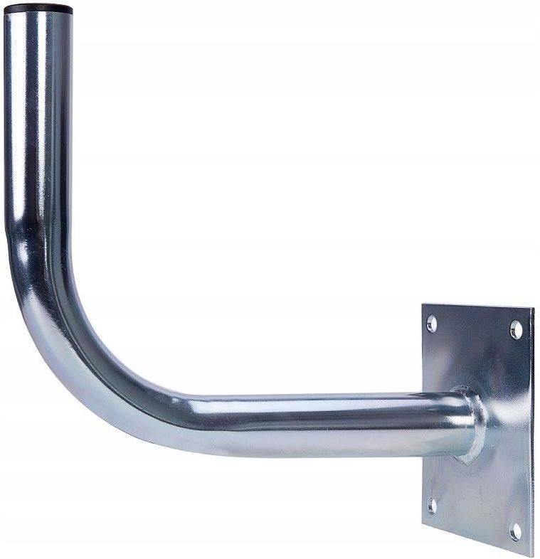 Maszt uchwyt ścienny antenowy L 20/30 Maszt uchwyt ścienny antenowy L-30/20 Solidny maszt antenowy wykonany z ocynkowanej blachy stalowej oraz z przyspawanej do niej rury ocynkowanej o średnicy 38 mm. Kapturek z tworzywa sztucznego zapobiega przedostawaniu się wody do wnętrza. Wymiary Odległość od ściany: 30 cm Wysokość rury pionowej: 20 cm Rura: ⌀ 38 mm Blacha: 150x150 mm (wymiar może różnić się od przedstawionego w ofercie) Otwory: 4x ⌀ 10 mm Rozstaw otworów w podstawie uchwytu antenowego: 8 cm Z racji różnych dostaw dopuszczalna rozbieżność w wymiarach w zakresie +/- 5cm