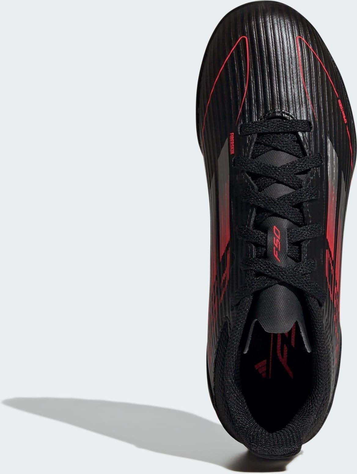 Adidas F50 League TF Junior IE3756 Model: IE3756 Kolor: czarny Materiał Przeznaczenie: trawa sztuczna - TF/AG Adidas F50 League TF Junior IE3756 Buty do szybkich stóp na sztucznej murawie. Podkręć swoje tempo w lekkich butach adidas F50 stworzonych z myślą o prędkości. Cholewka Fiberskin tych młodzieżowych butów piłkarskich League wyróżnia się przyciągającym wzrok wzorem Sprintgrid i wykorzystuje dopasowujący się do stopy język Tunnel Tongue, który blokuje stopę w czasie biegu. Miękka pianka EVA osadzona na gumowej podeszwie zewnętrznej z wypustkami stworzonej z myślą o grze na sztucznej murawie amortyzuje każdy krok.