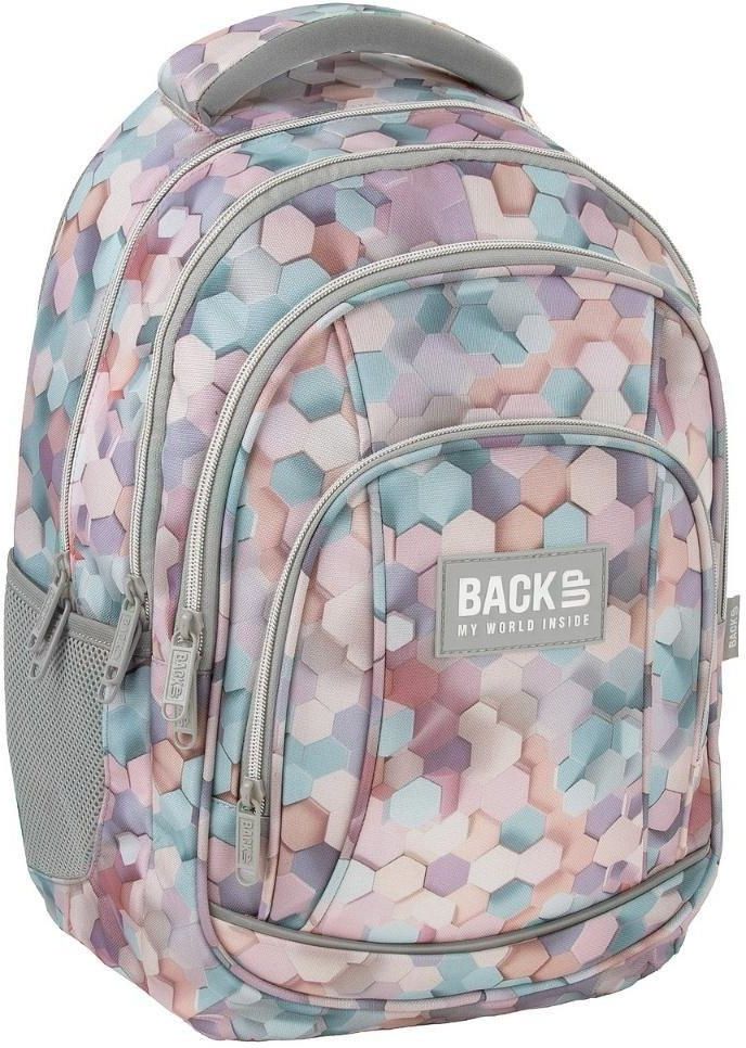 Wzór stworzony przy użyciu AI, dzięki czemu jest absolutnie niepowtarzalny i unikatowy. Zachwyca motywem sześciokątów, które tańczą niczym kolorowe plastry miodu. Tworzą one piękny efekt fal 3D, odbijając i zatapiając się w harmonijnych kompozycjach. Plecak utrzymany jest w naturalnych odcieniach błękitu, z dodatkiem brązu, delikatnego różu i beżu. Motyw sześciokątów doskonale współgra ze światłem, które subtelnie je podkreśla, nadając całości wyjątkowy charakter. Plecak BackUP posiada: 4 komory 2 boczne kieszenie na bidon w pierwszej komorze kieszenie do przechowywania laptopa i tabletu w drugiej komorze małą kieszonkę na zamek błyskawiczny, idealną na drobiazgi w trzeciej komorze kieszonkę z siateczki na zamek błyskawiczny, uchwyt na klucze, przegródki na długopisy, legitymację oraz większą kieszeń na chusteczki, płyn antybakteryjny, czy gumy do żucia ergonomiczne, usztywnione plecy wyprofilowane oddychającą pianką miękkie, profilowane szelki z możliwością regulacji regulowany pasek mostka czarne dno wykonane ze wzmocnionej tkaniny odblaski na froncie oraz szelkach rozmiar 42 x 30 x 20 cm Nazwa kolekcji: Geometric beige. Kraj produkcji: PL Producent/osoba odpowiedzialna za bezpieczeństwo produktuDerform Sp. Z o.o.Sady ul. Za Motelem 162-080 Tarnowo Podgórneinfo@derform.com.pl61 8489410