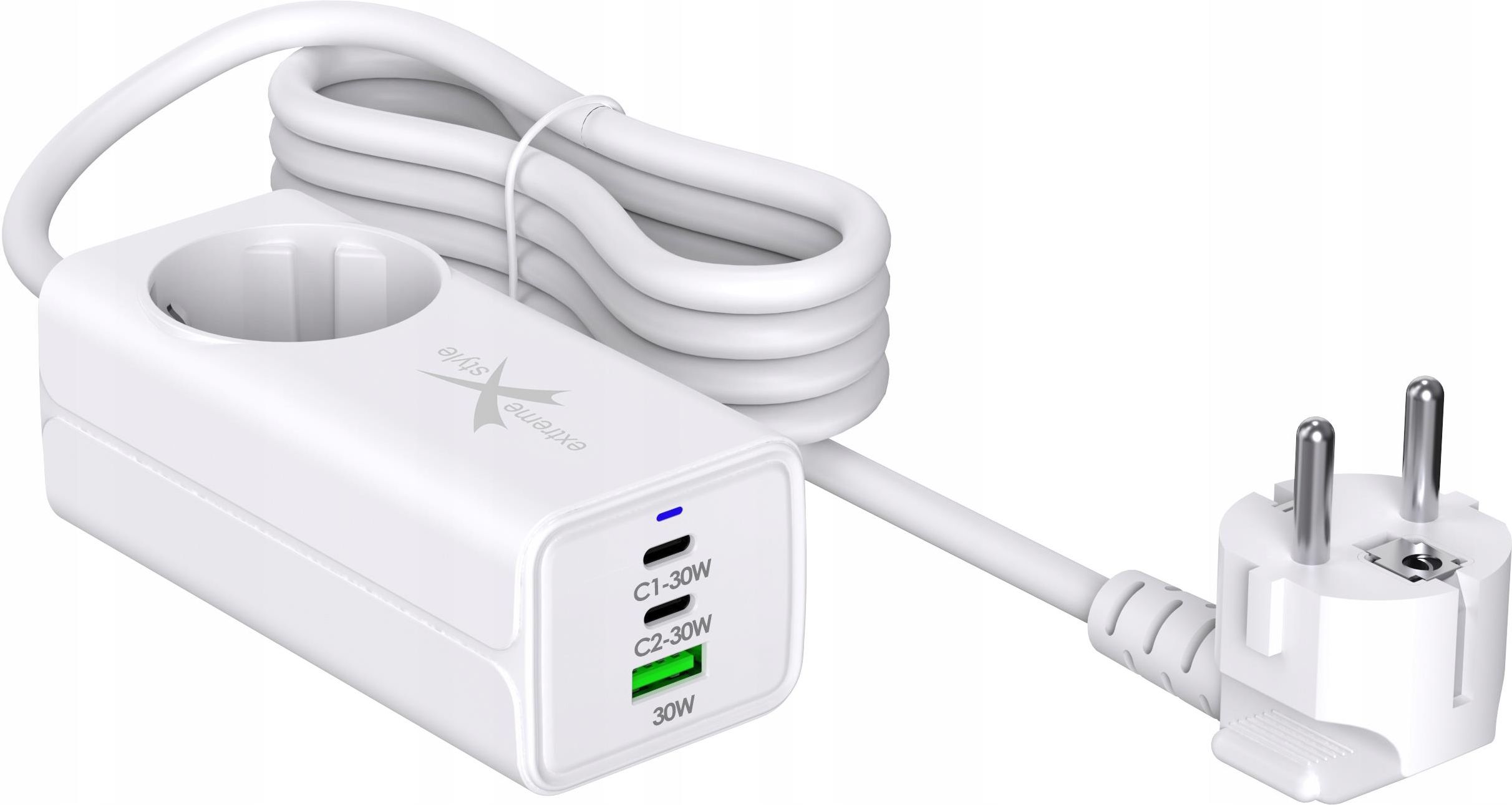 Extremestyle Z Gniazdem 230V 2 X Usb Typ-C Usb 230 V Gan-65 W Ryglice