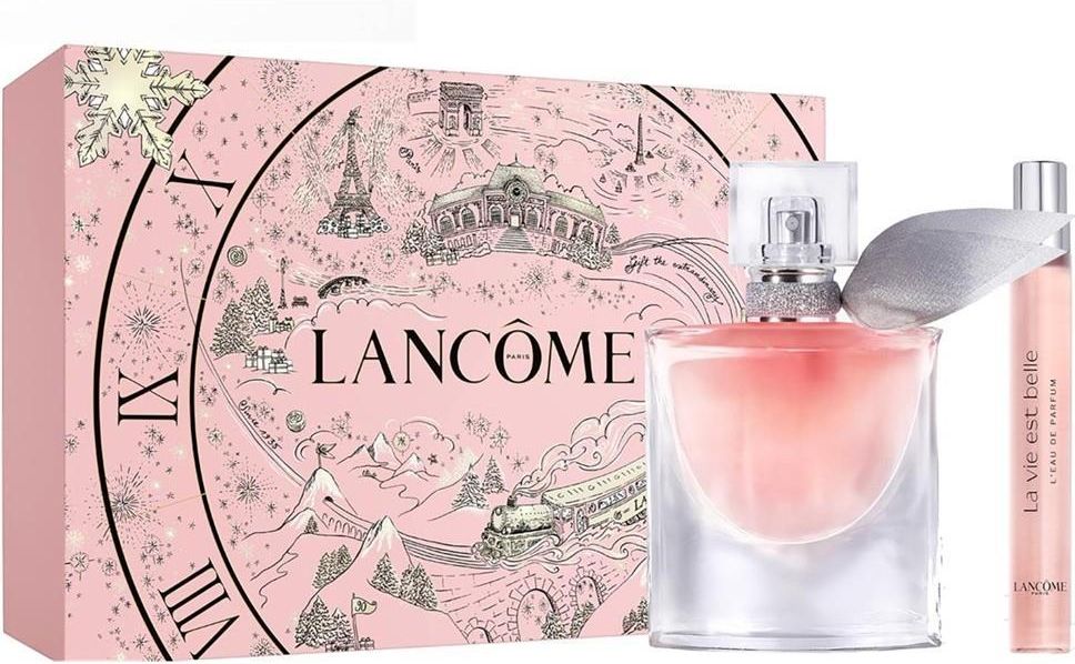 3614274652192 Zestaw La Vie Est Belle składa się w wód perfumowanych w dwóch pojemnościach - 30ml oraz 10ml.Zapach Lancôme La Vie Est Belle to symbol współczesnej, szczęśliwej i wolnej kobiety. Nad kompozycją zapachu Lancôme po raz pierwszy w historii marki pracowało aż troje najwybitniejszych francuskich kreatorów zapachów - Olivier Polge, Dominique Ropion i Anne Flipo, którzy połączyli swoje talenty i przy użyciu zaledwie 63 składników (blisko połowa z nich jest naturalna) opracowali formułę odzwierciedlającą kobietę XXI wieku. Flakon swój kształt zawdzięcza projektowi z 1949 roku kiedy Lancôme stworzyło flakon `Le souriere de cristal` nazwany `Kryształowym uśmiechem`. Szara wstążeczka z organzy, która zdobi szyjkę perfum ma symbolizować kobiecą wolność.Nuty zapachowe:Nuta głowy: czarna porzeczka, gruszkaNuta serca: irys, jaśmin, kwiat pomarańczyNuta bazy: paczula, fasolka tonka, wanilia, pralina