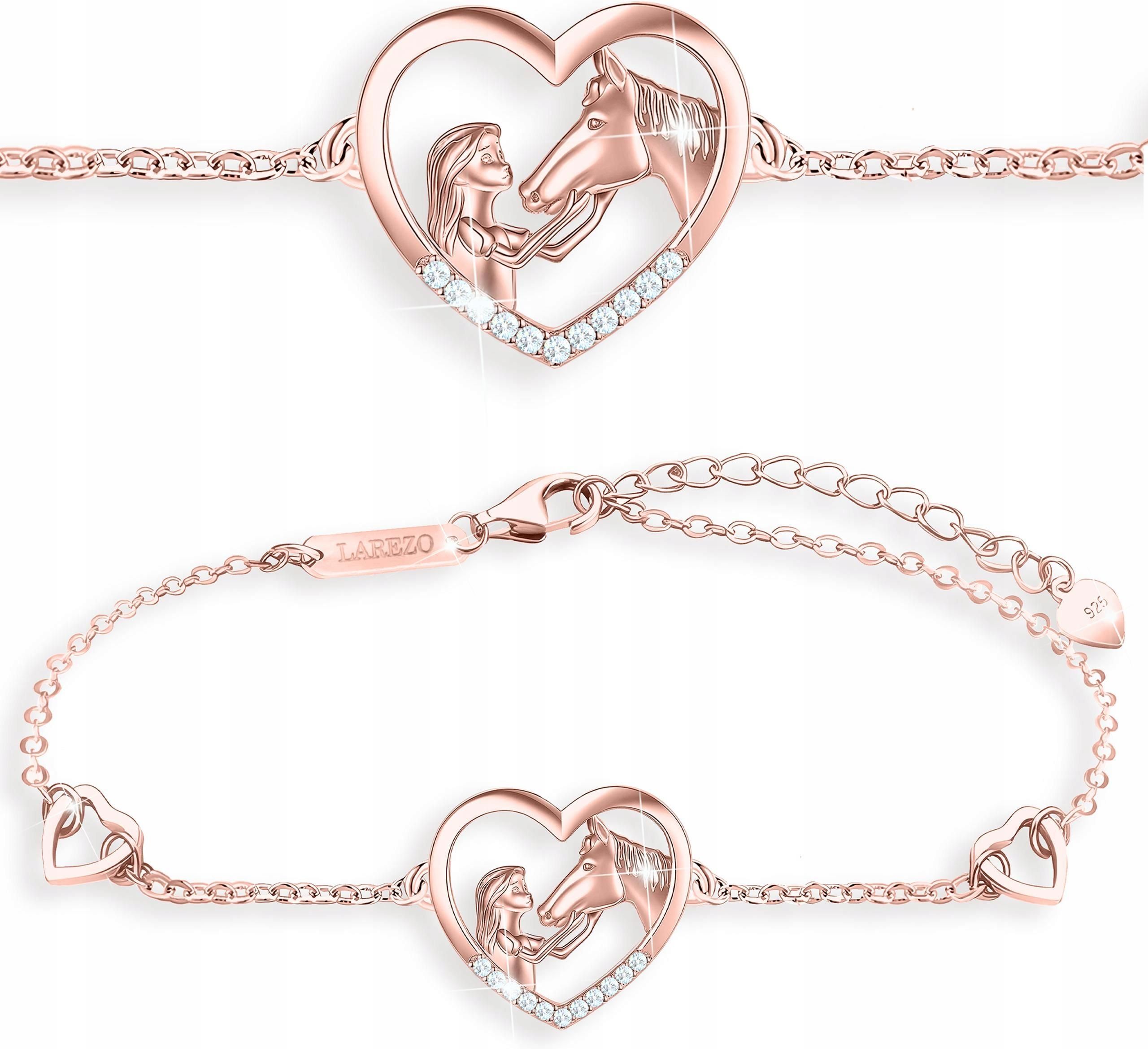 Larezo Bransoletka Pozłacana Serce Dziewczynka Z Koniem Cyrkoniami Srebro 925 Ryglice