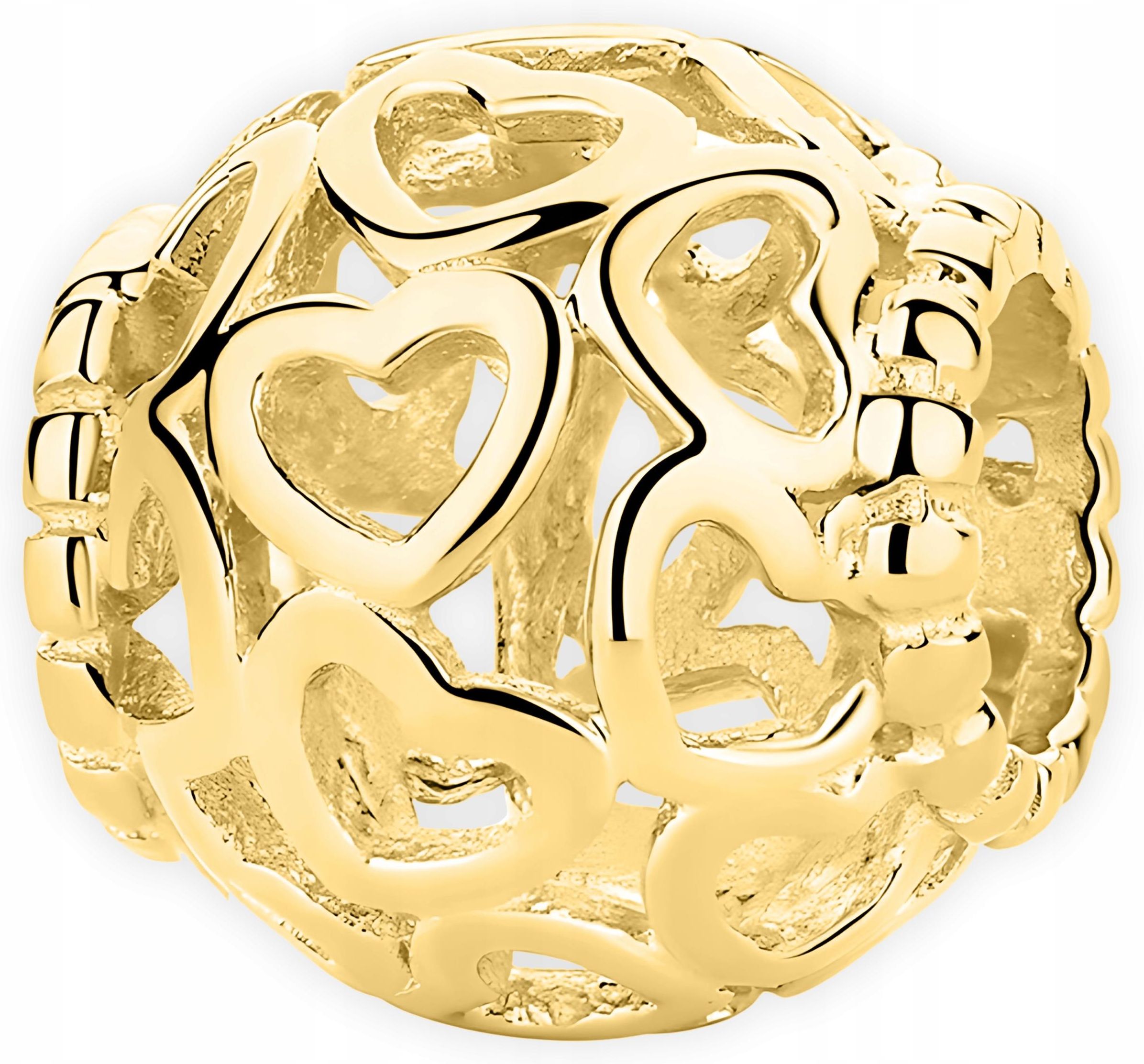 Larezo Charms Złoty Ażurowe Serduszka 585 Serce Serduszko Beads Kulka Srebro 925 Ryglice