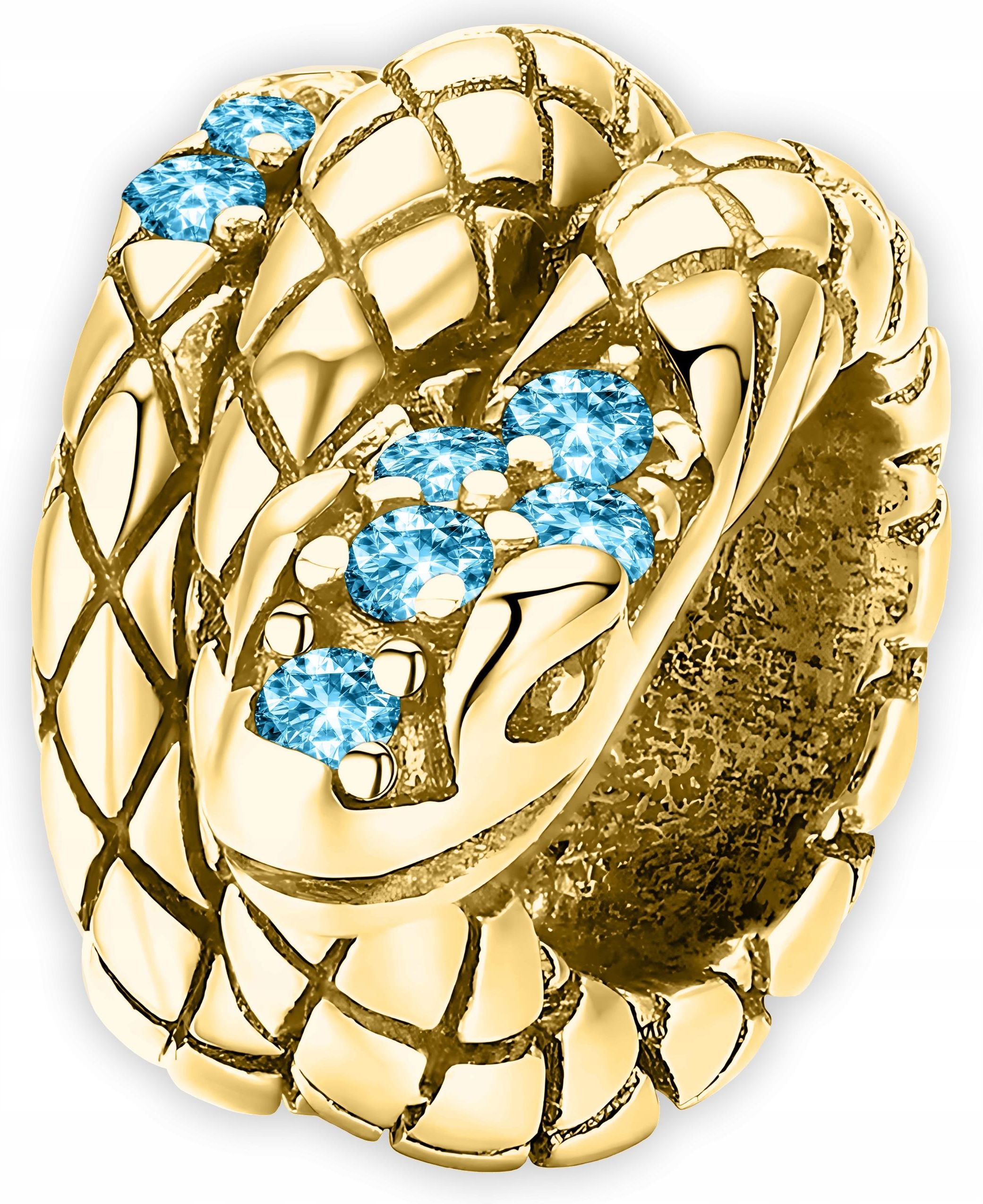 Larezo CHARMS ZŁOTY Wąż POZŁACANY 585 Niebieskie Kryształki Cyrkonie SREBRO 925 Ryglice