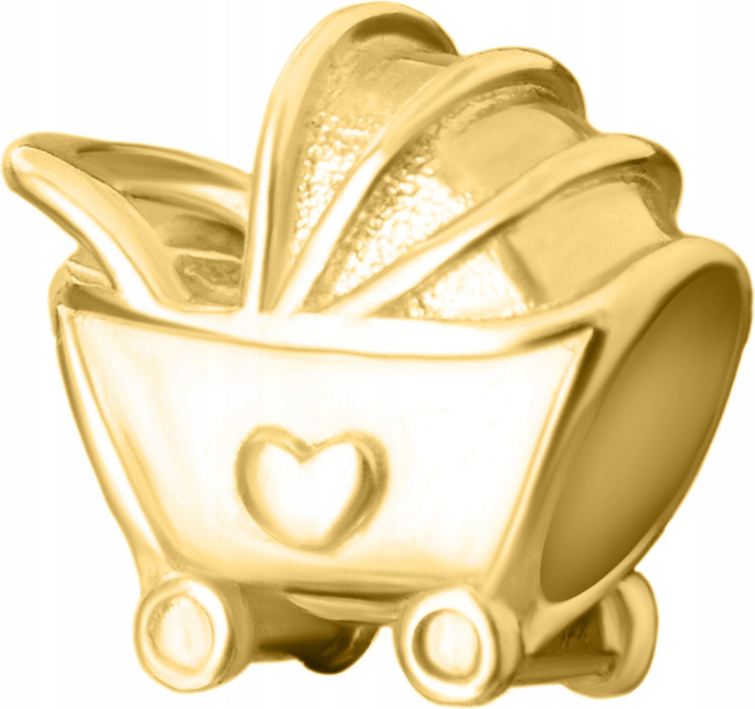 Larezo CHARMS ZŁOTY Wózek Dziecięcy POZŁACANY 585 dla Przyszłej Mamy SREBRO 925 Ryglice