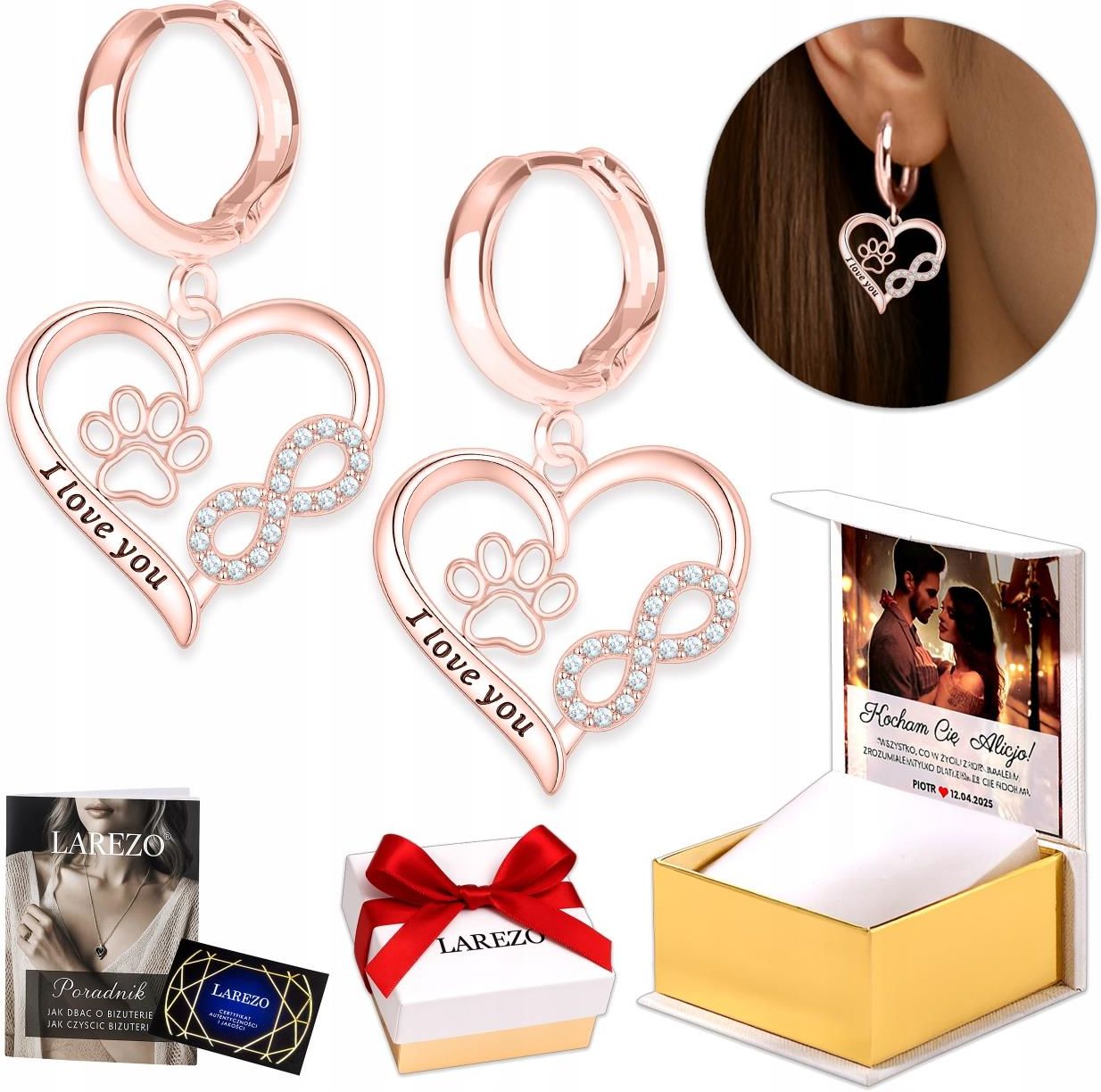 Kolczyki Pozłacane 925 Serca z Łapką Psa Serduszka Psia Łapa Damskie Kółka Kolczyki Srebrne Surowiec: Srebro Próba: 925 Zapięcia kolczyków: Bigiel Angielski Pokrycie: Różowe Złoto pr.750 Kamienie: Cyrkonie Wymiary zawieszki: Wysokość (zawieszki): 18,5 mm Wysokość (bigla): 17mm Szerokość: 18,5 mm Waga: 7,6g DO ZAMÓWIENIA OTRZYMASZ GRATIS 1. PUDEŁECZKO Z INDYWIDUALNYM NADRUKIEM - wysokiej jakości biało złote pudełeczko chroni oraz pięknie prezentuje wyrób. 2. PORADNIK – praktyczne wskazówki, jak dbać o biżuterię. 3. CERTYFIKAT JAKOŚCI – podpisany przez naszych jubilerów. 4. OPAKOWANIE FASONOWE – chroni przed wilgocią i uszkodzeniami. Otrzymujesz kompletny zestaw, by Twój zakup nie był zwykłym zamówieniem, ale wyjątkowym doświadczeniem. ❤️ Co wyróżnia nasze Kolczyki? Najwyższej próby srebro 925. Wyjątkowy design unikalne i starannie zaprojektowane wzornictwo, które przyciąga uwagę. Najwyższej jakości srebro antyalergiczne - nie zawiera żadnych domieszek niklu oraz innych szkodliwych metali. Certyfikat jakości potwierdzający autentyczność wyrobu. Ręcznie wybita próba jubilerska. Generator nadruków znajdziesz na stronie Nadruk.larezo.pl Wejdź na stronę: nadruk.larezo.pl Wybierz obraz lub wgraj własne zdjęcie. Dodaj pola tekstowe i wpisz własną dedykacje (maksymalnie 3 pola tekstowe) Sprawdź podgląd nadruku klikając: Sprawdź podgląd dedykowanego pudełeczka Wpisz swoje dane które podałeś/aś podczas składania zamówienia. Kliknij przycisk 'Wyślij swój projekt' oraz poczekaj kilka sekund na komunikat z potwierdzeniem wysłania wiadomości e-mail z projektem (to bardzo ważne). Na projekt czekamy do 30 minut od momentu złożenia zamówienia. Po tym czasie zamówienie wysyłane jest bez nadruku wewnątrz pudełeczka. Zamówienie zostanie zrealizowane i wysłane w dni robocze ciągu 24 godzin od złożenia zamówienia. Każdy wyrób posiada wybitą próbę oraz imiennik jubilerski co daje Ci pewność, że kupujesz oryginalny produkt, wykonany z precyzją i dbałością o każdy detal – a nie masową produkcję niewiadomego pochodzenia. To świadomy wybór dla osób, które cenią jakość, bezpieczeństwo i polskie rzemiosło jubilerskie. ZAPAKUJ NA PREZENT Dzięki temu, możesz wręczyć prezent od razu po otrzymaniu paczki lub nadać paczkę bezpośrednio do osoby, której chcesz zrobić prezent. Usługa dodatkowo płatna w podsumowaniu koszyka.
