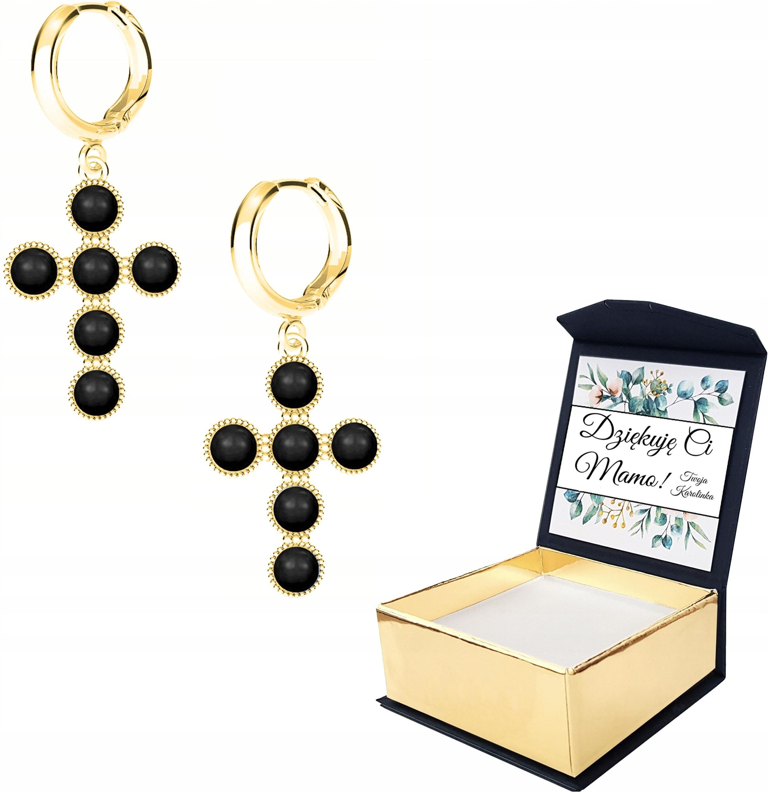 Larezo Kolczyki złote Krzyż Perły Czarne WŁASNY NADRUK Ryglice