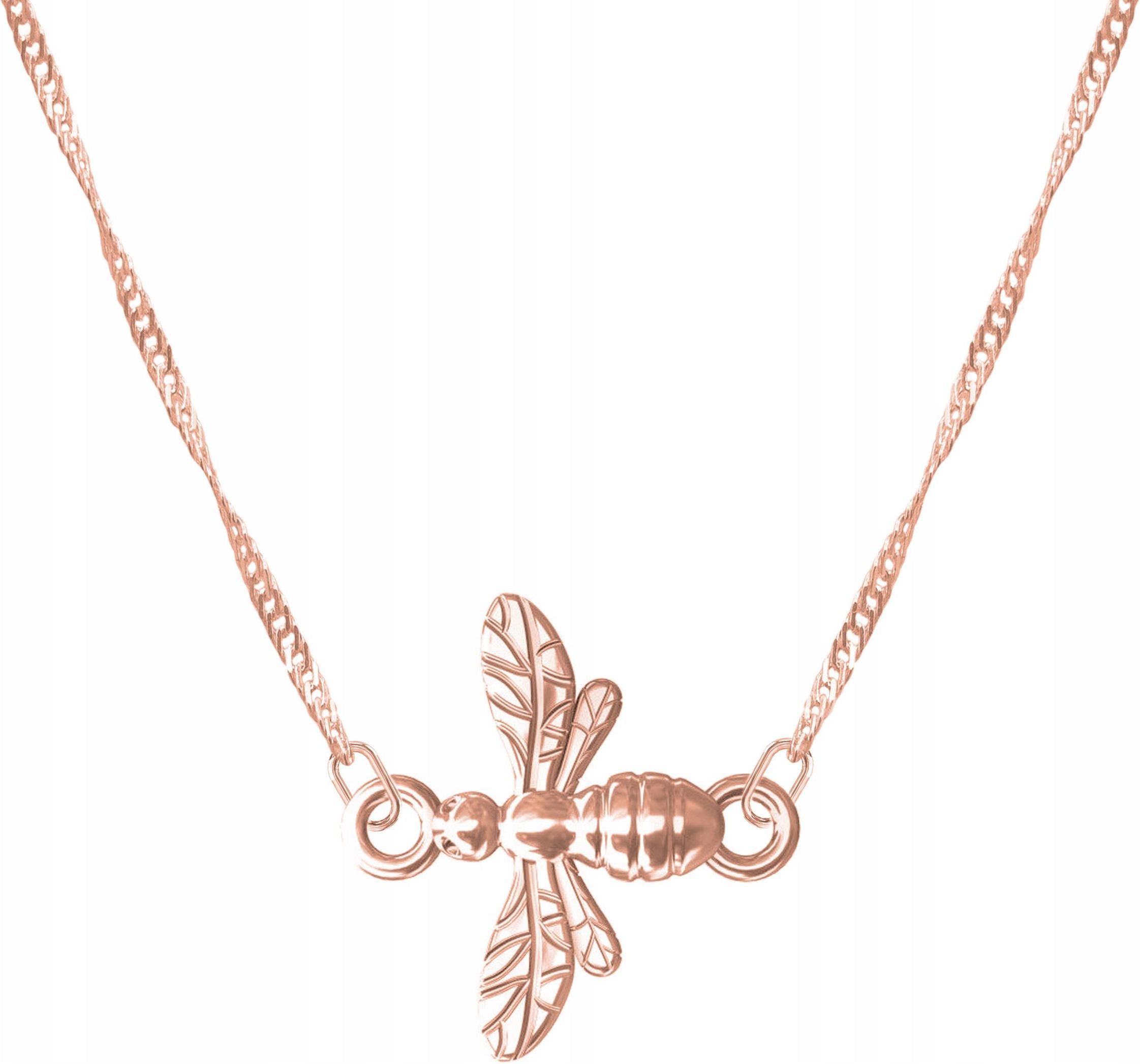 Naszyjnik Pszczoła różowe złoto 💙 Surowiec: Srebro 💙 Próba: 925 💙 Powłoka:4-warstwy różowego złota próby 750 (18 Karatów) 💙 Kamień: Brak 💙 Typ: Naszyjnik 💙 Długość: 42cm + 3cm (przedłużka w kształcie serc) 💙 Splot łańcuszka: Singapur 💙 Wysokość zawieszki: 14,50 mm 💙 Motyw: Pszczoła 💎 …