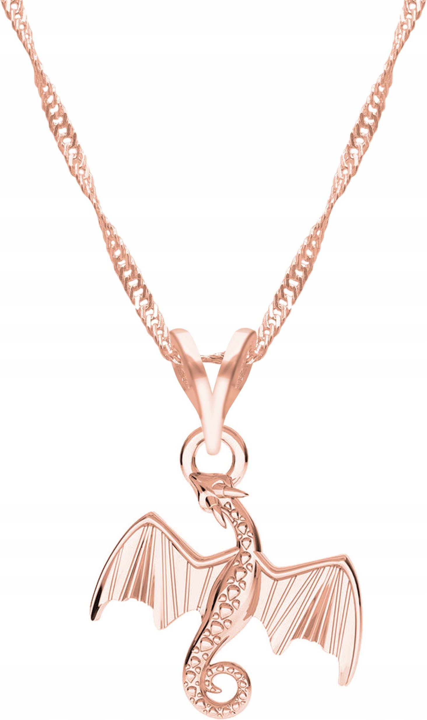 Naszyjnik Smok różowe złoto 💙 Surowiec: Srebro 💙 Próba: 925 💙 Powłoka:4-warstwy różowego złota próby 750 (18 Karatów) 💙 Kamień: Brak 💙 Typ: Naszyjnik 💙 Długość: 42cm + 3cm (przedłużka w kształcie serc) 💙 Splot łańcuszka: Singapur 💙 Motyw: Inny 💎 Biżuteria pozłacana jest czterema warstwami …