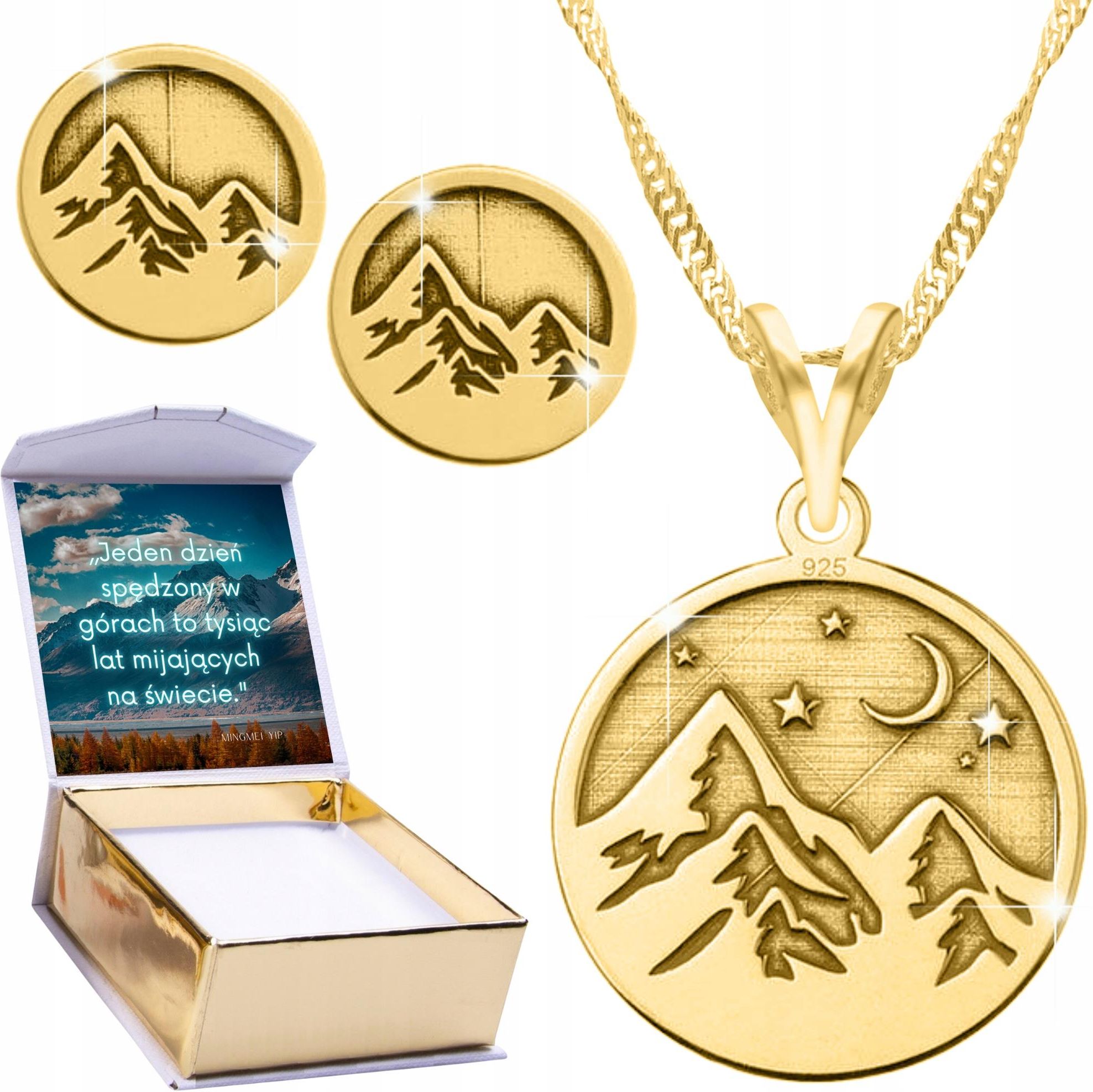 Larezo Zestaw Złoty Naszyjnik + Kolczyki na Sztyft z Górami Góry Natura 925 NADRUK Ryglice