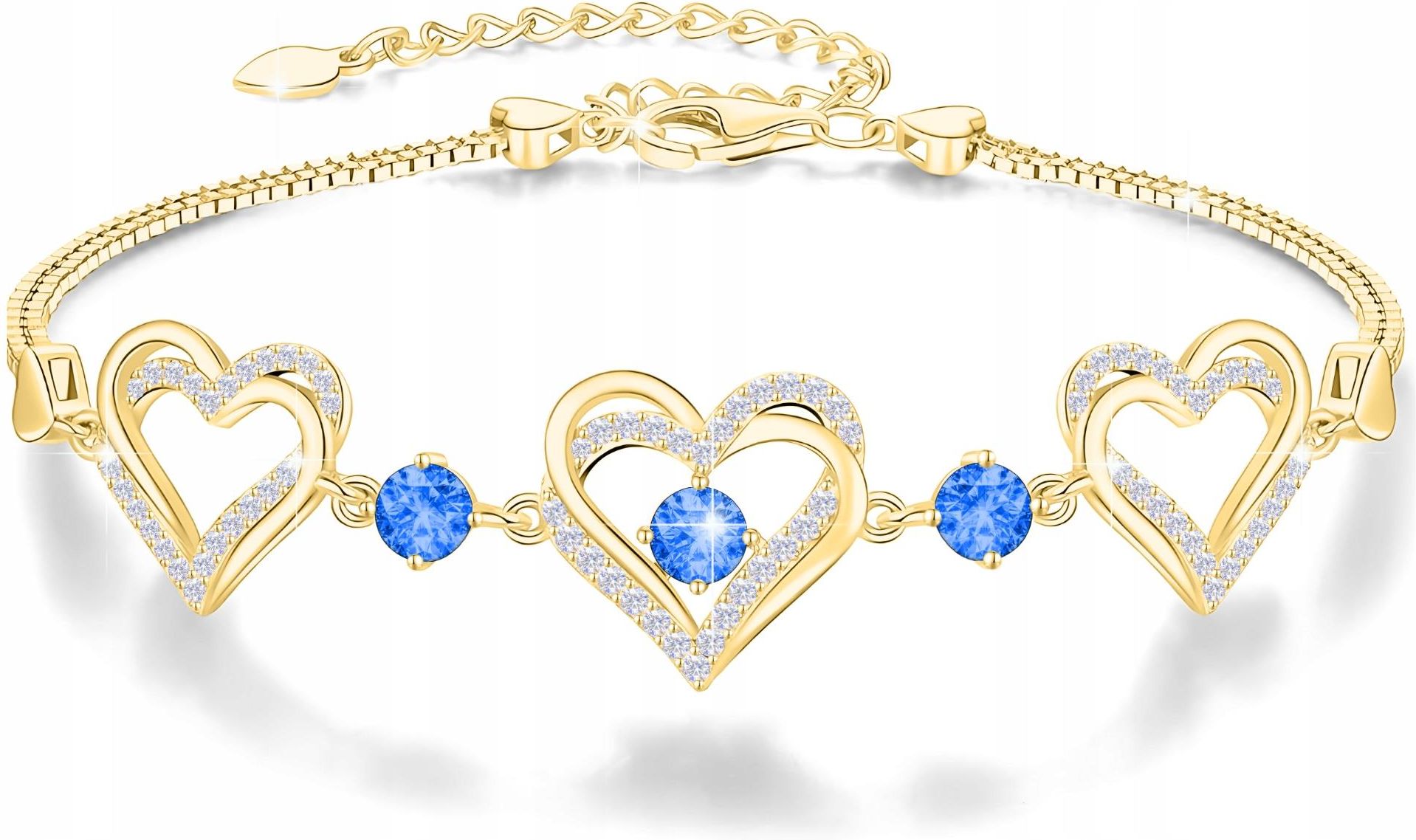 Bransoletka z Sercami Surowiec: Srebro Próba: 925 Pokrycie: Żółte Złoto pr.585 Długość: 17cm + 3cm (przedłużka) Kamienie: Cyrkonie Splot: Kostka Wymiary serca: Wysokość: 12 mm Szerokość: 13 mm Waga: ~3,6g Motyw: Serce / Love Wysoka jakość bransoletki została potwierdzona podczas badania przez …