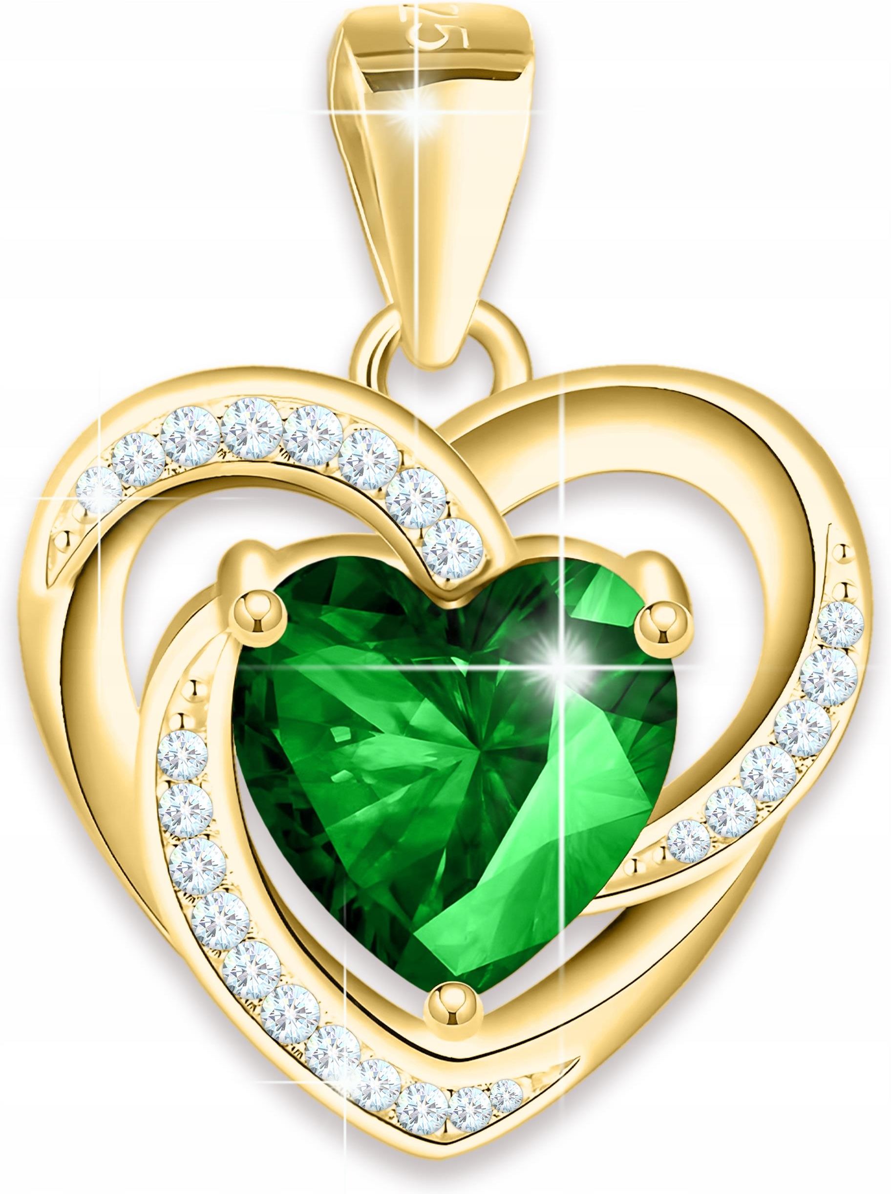 Larezo Złota Zawieszka Do Łańcuszka Zielony Kryształ Serce Z Cyrkoniami Srebro Ryglice