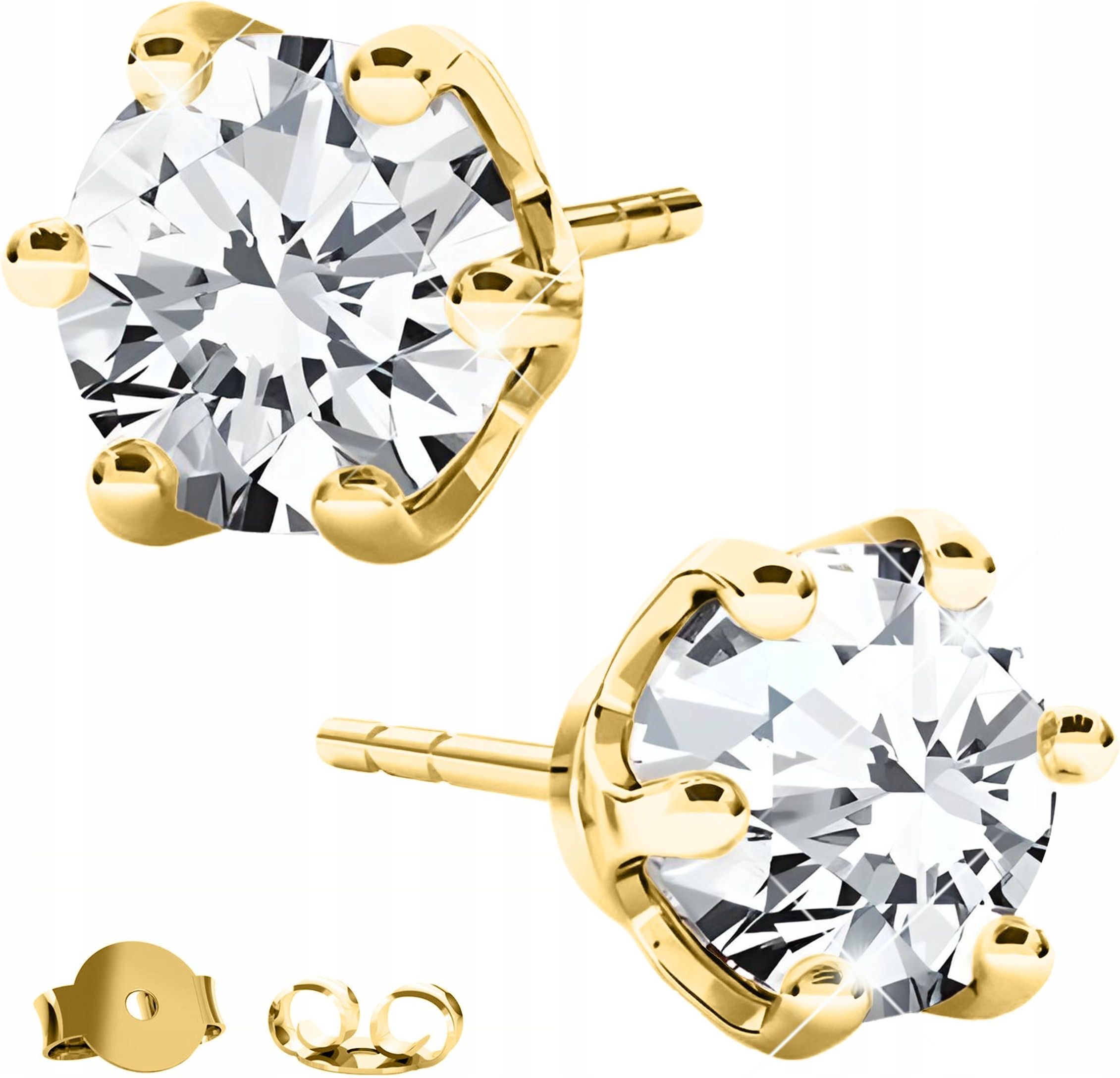 Larezo Złote Kolczyki Wkrętki 925 Białe Kryształy 6mm Cyrkonie Kółka Pozłacane 585 Ryglice