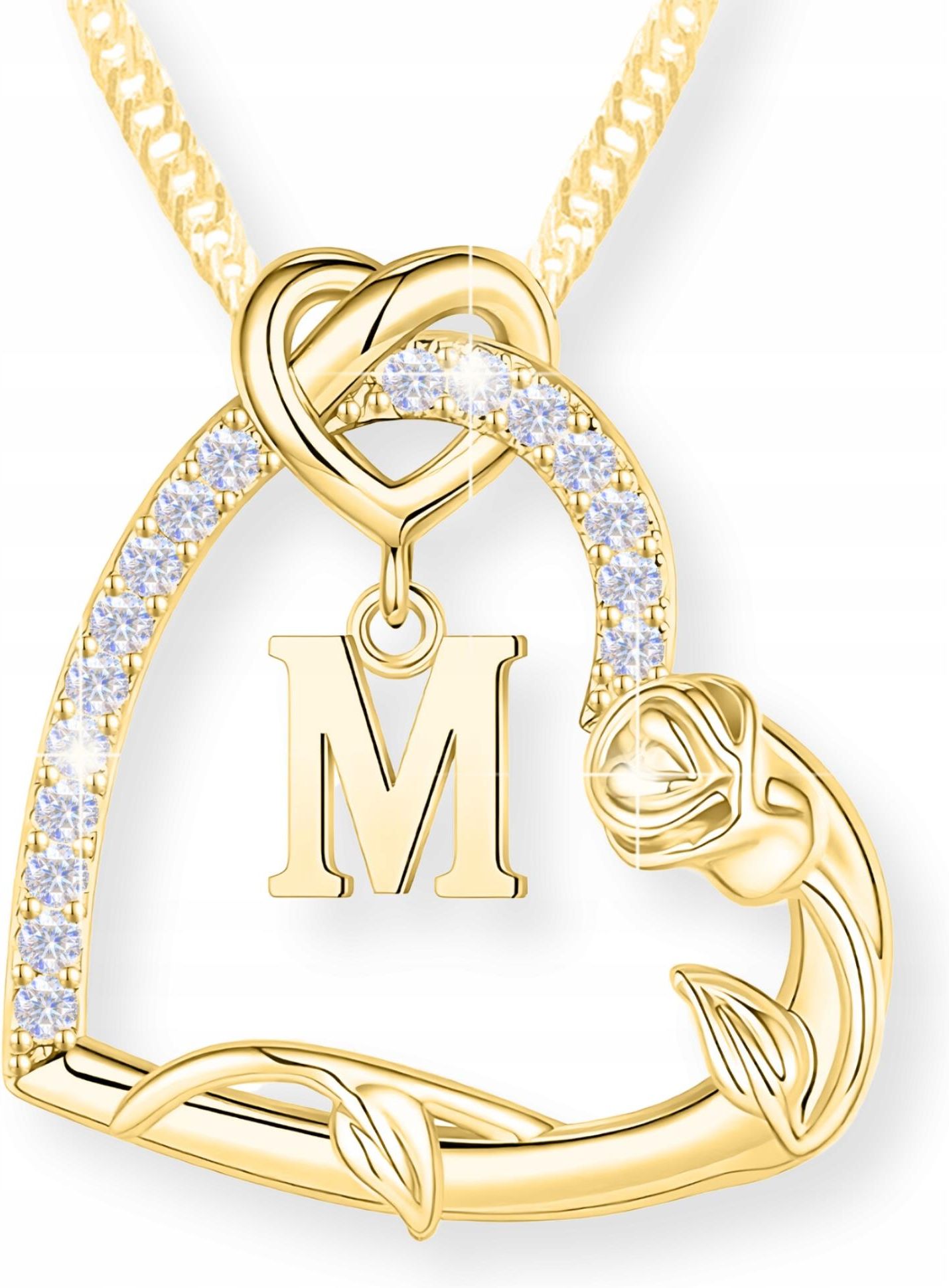 Larezo Złoty Naszyjnik 925 Serce z Literką Pozłacany 585 Kwiat Życia Róża Litera M Ryglice