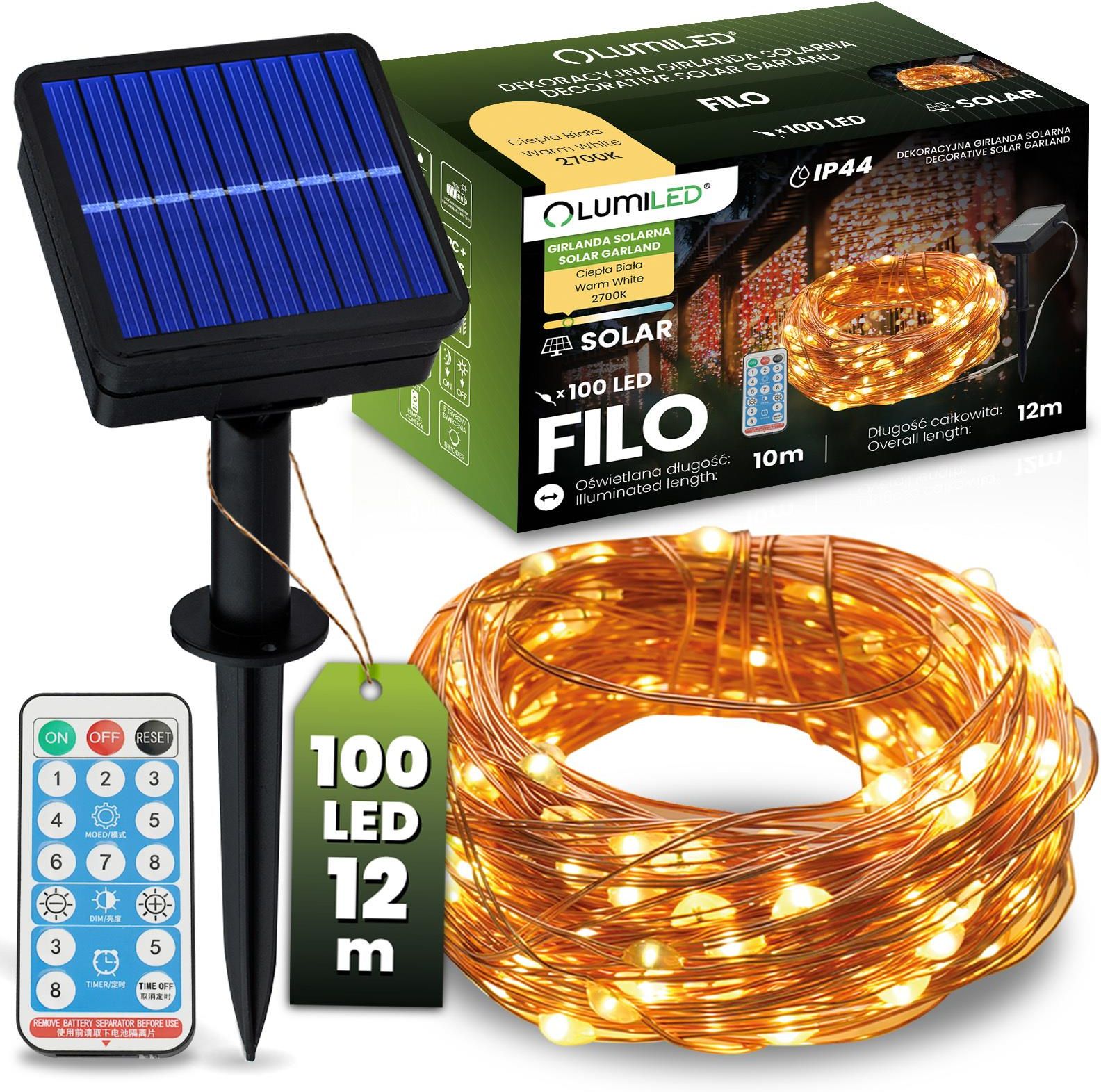 Lumiled Girlanda Solarna Ogrodowa 100 Led Ozdobne Druciki 12M 3000K + Piot Filo Ryglice