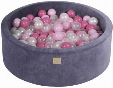 Meowbaby Basen Okrągły Velvet 30Cm Szaroniebieski 200 Piłek Jasny Róż Pastelowy Róż Transparentne Ryglice