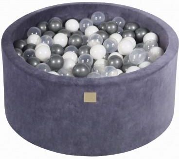 Meowbaby Basen Okrągły Velvet 40Cm Szaroniebieski 300 Piłek Srebrne Białe Transparentne Ryglice