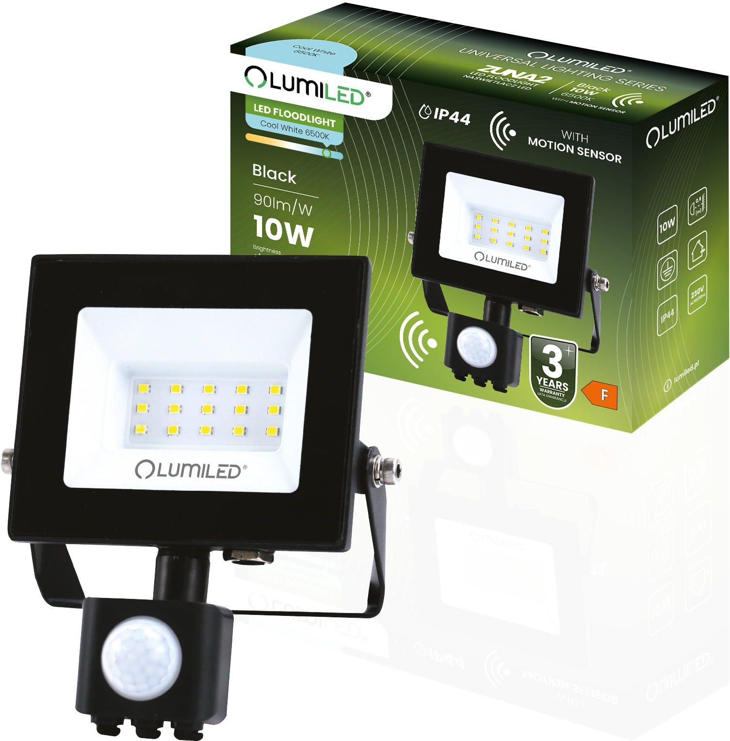 Naświetlacz Led Zuna2 10W 900Lm 6500K Czujnik Ruchu Ip44 Lumiled Ryglice