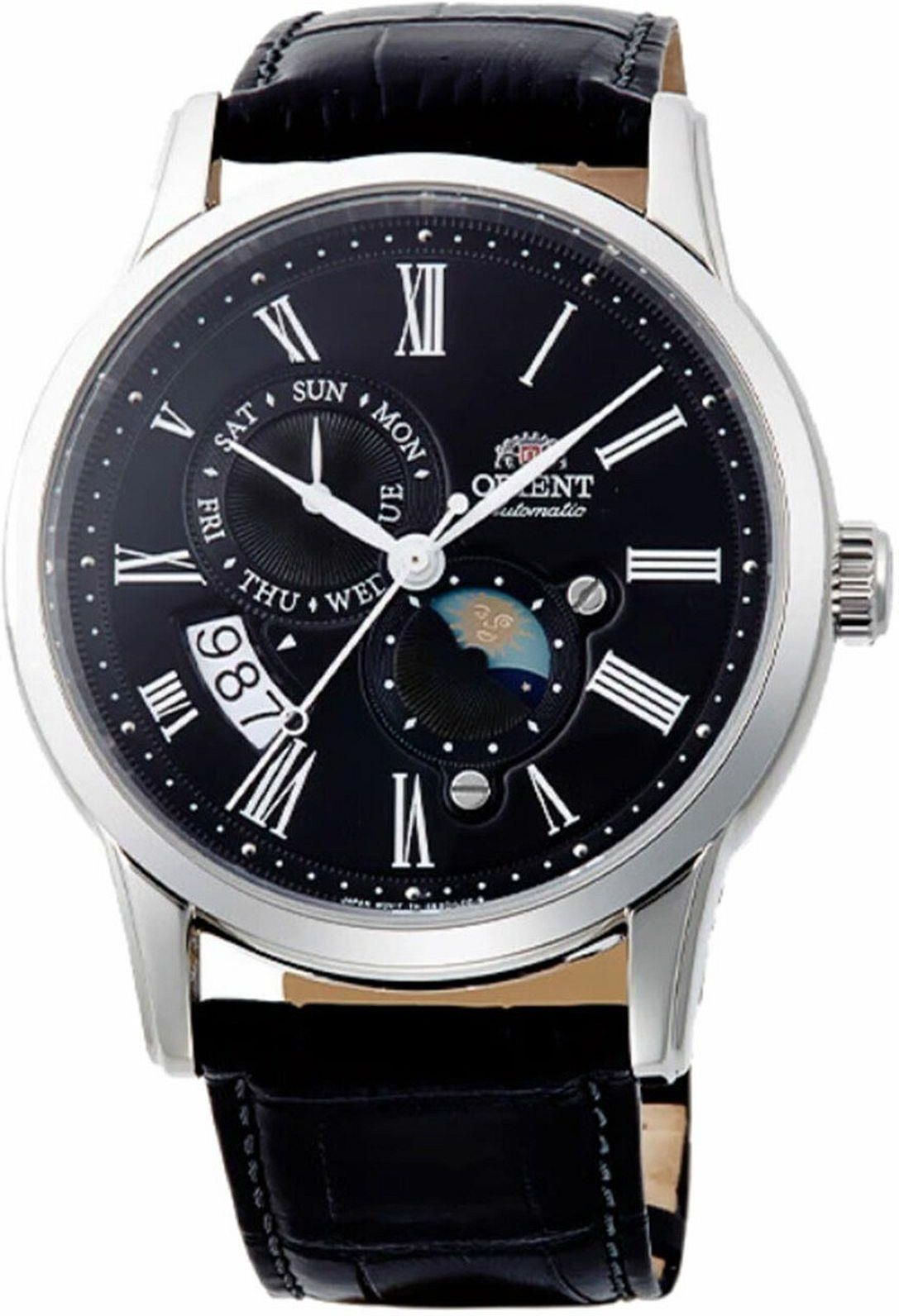 Orient RA-AK0010B10B O marce: Orient to połączenie doskonałej jakości i ciekawego designu. Ich zegarki dedykowane są klientom szukającym tradycyjnych i uniwersalnych modeli o wysokiej klasie wykonania, ale w ofercie znajdują się także bardzo funkcjonalne zegarki sportowe. Wszystko o dość charakterystycznym designie, który przywodzi na myśl azjatycką estetykę na najwyższym poziomie. Zegarek ORIENT RA-AK0010B10B to męski czasomierz w kolorze uniwersalnej czerni. Urządzenie napędza niezawodny mechanizm automatyczny, który działa dzięki ruchom nadgarstka i posiada 40-godzinną rezerwę chodu. Srebrna, okrągła koperta została wyprodukowana z jednego z najlepszych materiałów dostępnych na rynku, jakim jest nierdzewna i antyalergiczna stal szlachetna. Na czarnej tarczy umieszczono datownik dni miesiąca oraz wskaźnik faz księżyca, co nadaje zegarkowi odpowiedniego charakteru. Cyferblat ochrania przed zarysowaniami i stłuczeniami wysokiej jakości szkiełko szafirowe. Czarny pasek wykonany ze skóry naturalnej charakteryzuje się trwałością i wygodą użytkowania. Zegarek ORIENT RA-AK0010B10B posiada wodoszczelność na poziomie 5 ATM (50 metrów), dlatego nie musimy martwić się o drobne zachlapania powstałe podczas mycia lub pielęgnacji dłoni. Dane szczegółowe: Zapięcie - Klamerka Kolor koperty - Srebrny Rodzaj koperty - Stal nierdzewna Kolor tarczy - Czarny Funkcje Tarcza - 12-godzinna,Data Rodzaj - Męski Szkiełko - Szafirowe Mechanizm - Automatyczny Kolor paska - Czarny Materiał paska - Skóra naturalna Wodoszczelność - 5 ATM Typ mechanizmu - Automatyczny Wyświetlacz - Analogowy Typ kalendarza - Dzień miesiąca, Dzień tygodnia Wymiary: Średnica koperty (od-do) 41 - 45 mm Średnica koperty (dokładnie) 43 mm