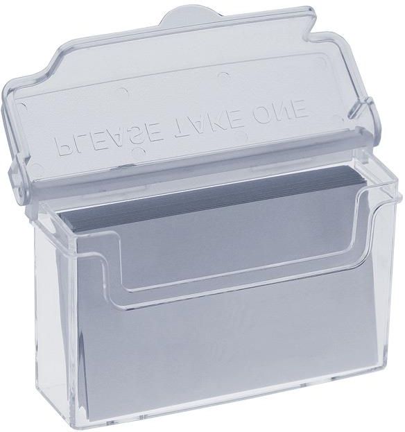 Odlewana plastikowa kieszeń zewnętrzna umożliwiająca umieszczenie wizytówek w pozycji poziomej. Do powieszenia. Długość: 30 mm Szerokość: 100 mm Wysokość: 62 mm Waga: 0,13 kg Mocniejsza konstrukcja niż w przypadku standardowych giętych stojaków plexi, dzięki technice odlewania.