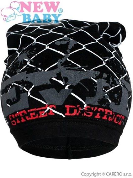 Piękna wiosenna bawełniana czapka New Baby. Czapka ma napis Evil street district. Czapka jest uszyta z cienkiego materiału, dzięki czemu nadaje się do wiosennych i jesiennych dni. Idealny produkt dla małych i większych dzieci. Materiał jest elastyczny. Skład: 100% bawełna. Obwód wokół głowy 40-50 cm.Rozmiar: 104 (3-4l)