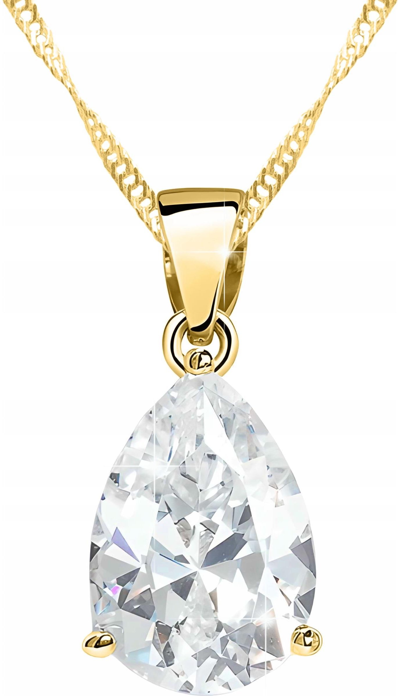 Złoty Naszyjnik Srebro 925 z Kryształem Łezka Cyrkonia Kropla Pozłacany 585 Ryglice
