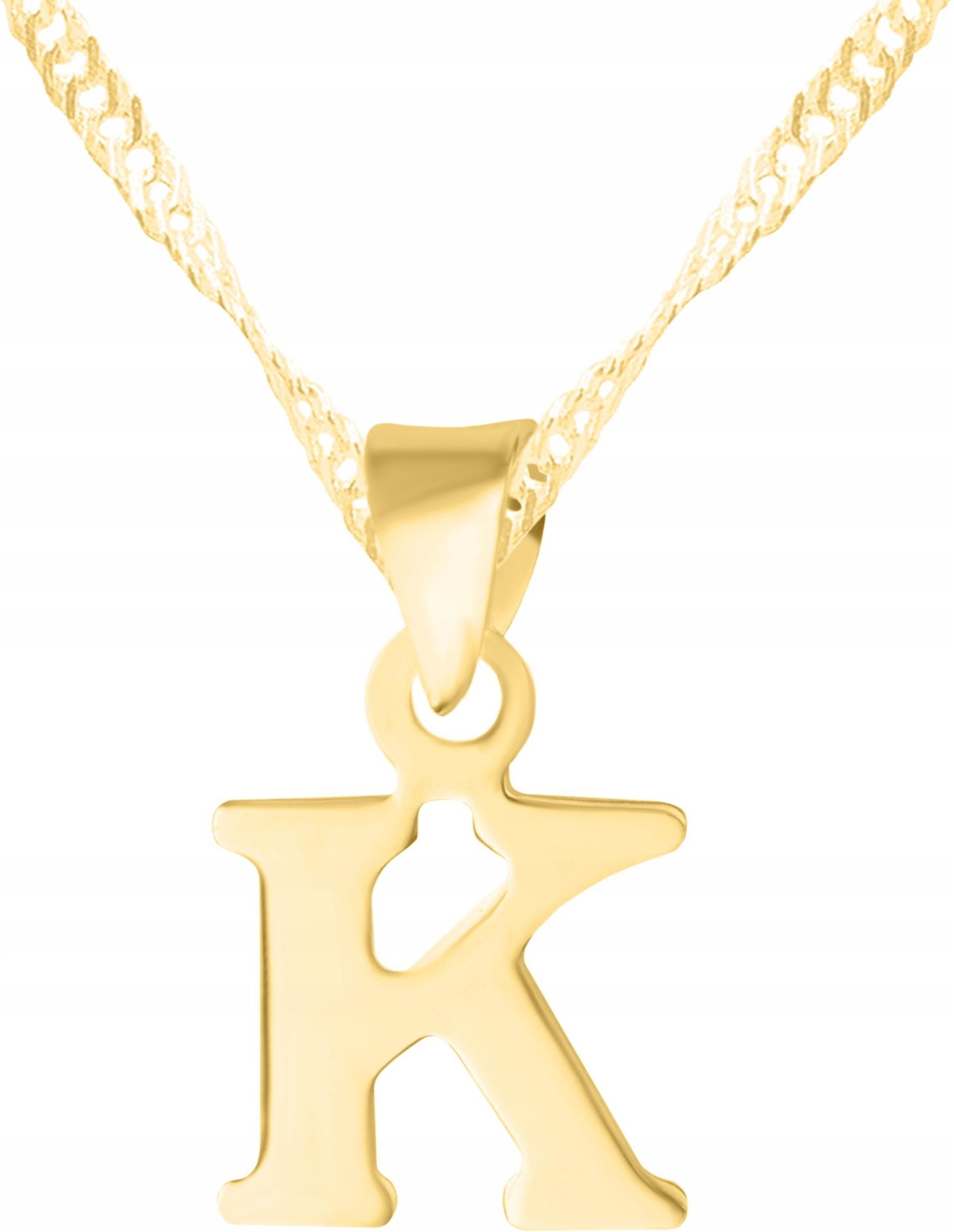 Złoty Naszyjnik z Literką Inicjał Pozłacany 585 Blaszka Litera K Srebro 925 Ryglice