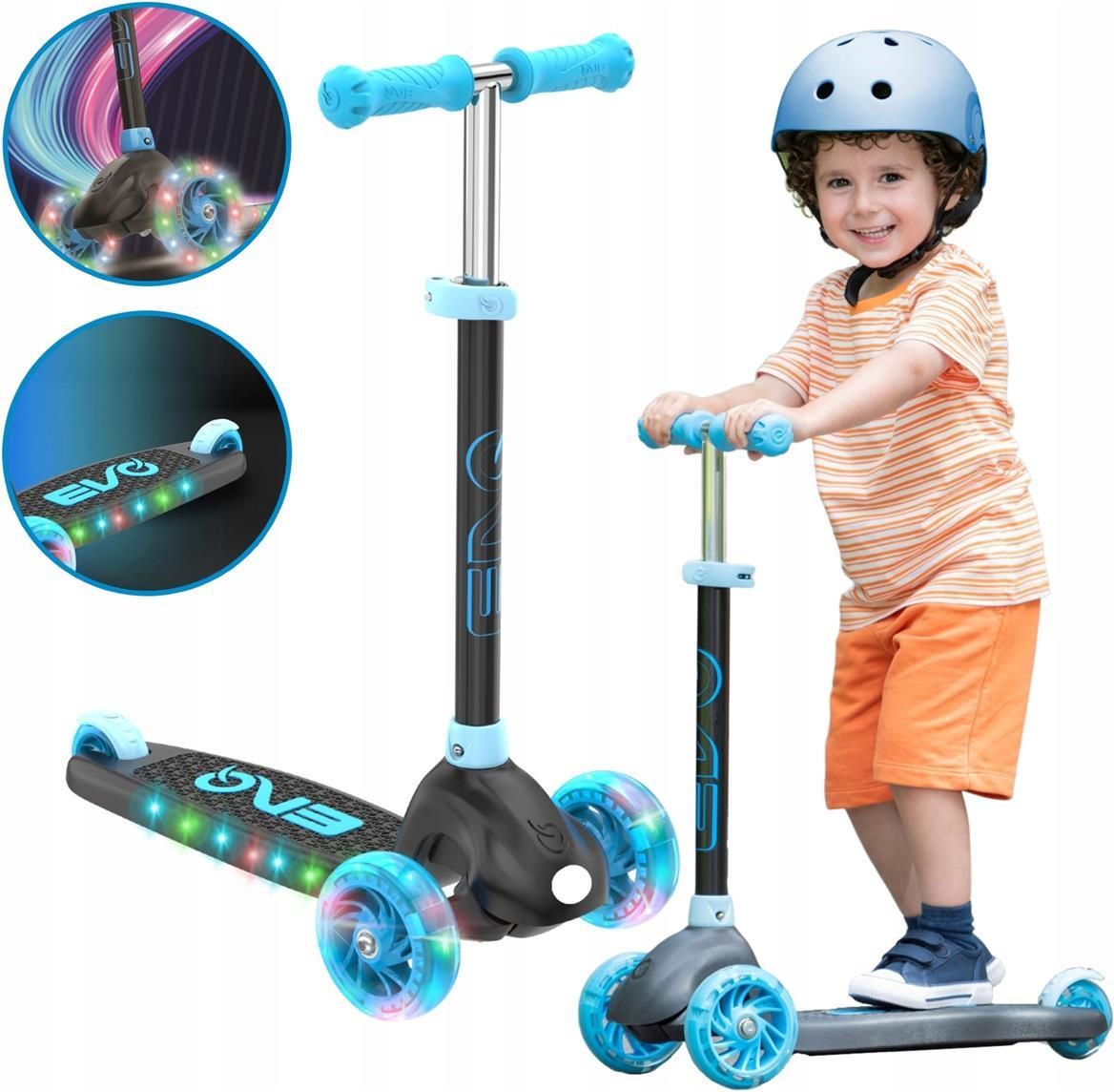 🔵✨EVO Regulowana Trójkołowa Hulajnoga dla Dzieci Eclipse Niebieski – Świecące Kółka i Podest✨🔵 Bezpieczna, stabilna i pełna frajdy! Marka EVO to dynamiczny producent innowacyjnych hulajnóg, rowerków i jeździków łączący nowoczesny design, funkcjonalność i bezpieczeństwo użytkowania. Hulajnoga EVO …