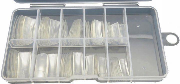 TIPSY CLEAR PRZEŹROCZYSTE 100 SZTUK Plastikowe tipsy w kasetce Tipsy są wykonane z tworzywa sztucznego. Są zapakowane w eleganckie i praktyczne pudełeczko w którym znajduje się 100 sztuk tipsów, po 10 sztuk z każdego z 10 rozmiarów. Kształt - kwadrat Tipsy bez kieszonki Ilość: 100 sztuk (po 10 szt z każdego z 10 rozmiarów). Opakowanie: pudełko plexi z przegródkami. 100 sztuk form w 10 rozmiarach, ułożone w poręcznym pudełeczku z przegródkami. 10 sztuk danego rozmiaru.