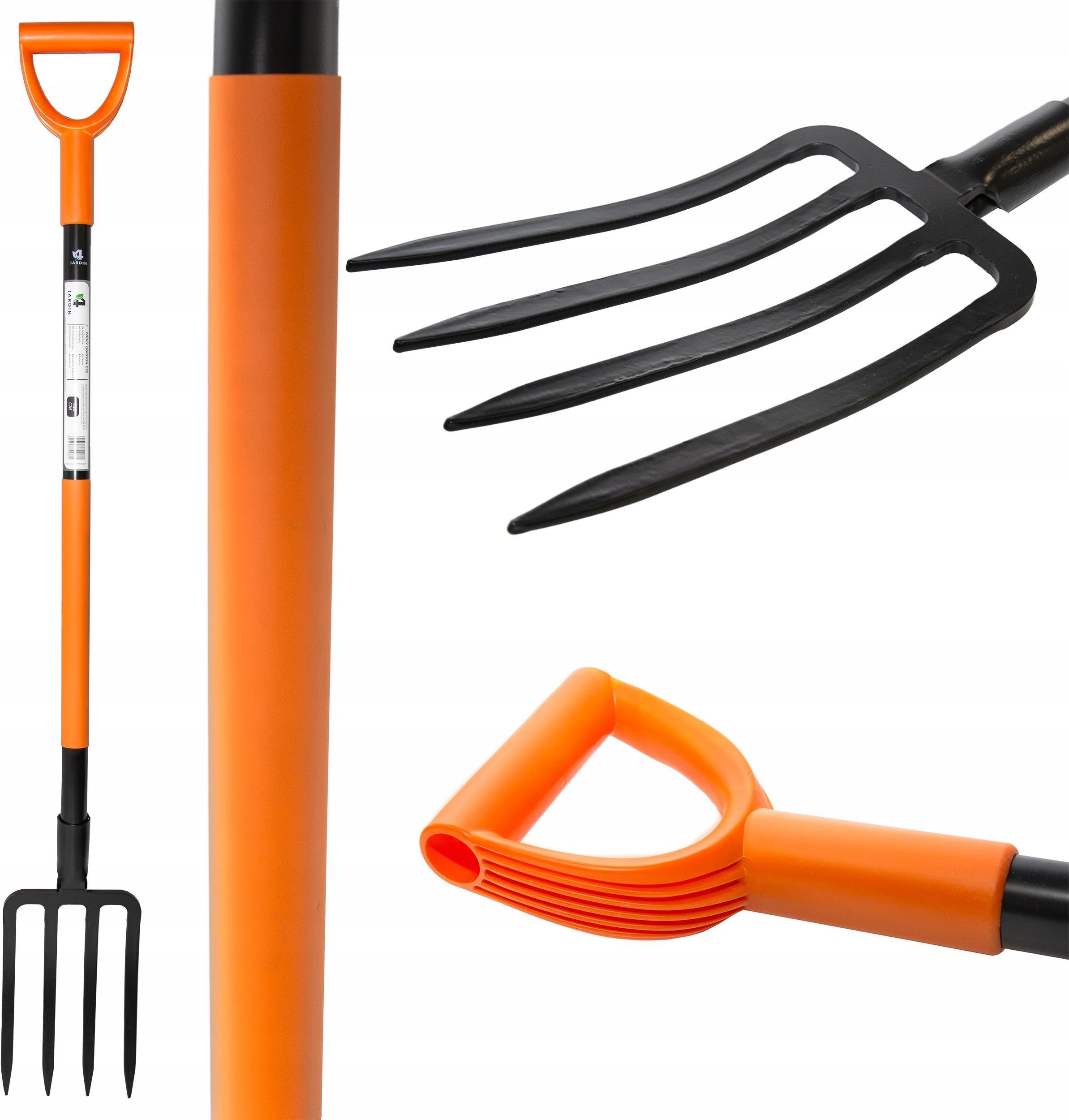 Widły ogrodnicze - niezawodność przy każdym użyciu Długość: 130 cm Szerokość części roboczej: 17,5 cm Wysokość części roboczej: 27,5 cm Szerokość rączki: 13 cm Widły ogrodowe - klucz do efektywnej pielęgnacji ogrodu Widły ogrodnicze to wszechstronne narzędzie o charakterystycznym kształcie głowicy, która posiada 4 zęby zakończone ostrą krawędzią. Jest idealna do prac związanych ze spulchnianiem gleby. Jest to praktyczne narzędzie, którego nie powinno zabraknąć w wyposażeniu każdego ogrodnika. Solidne i praktyczne widły ogrodnicze to narzędzie stworzone z myślą o pracach ziemnych, kompostowych i porządkowych. Idealnie sprawdzają się do przekopywania, napowietrzania gleby, przerzucania siana, liści, obornika oraz kompostu. Widły 4-zębne to gwarancja wygody użytkowania oraz pewny chwyt, dzięki czemu prace ogrodowe są przyjemniejsze i mniej męczące. Zastosowana nakładka na trzonku odpowiada za pełen komfort pracy, sprawdza się w każdych warunkach i pozwala na łatwiejsze wykonywanie zadań. Parametry - poznaj bliżej specyfikację wideł ogrodowych Długość: 130 cm Szerokość części roboczej: 17,5 cm Wysokość części roboczej: 27,5 cm Szerokość rączki: 13 cm Długość rękojeści: 22 cm Średnica trzonka: 3 cm Szerokość zębów: 1,5 cm Grubość zębów: 5 mm Czym wyróżniają się widły - dlaczego warto w nią zainwestować? Wygodna rękojeść - rączka w kształcie litery "D" doskonale układa się w dłoni, która nie ślizga się podczas użytkowania. Uniwersalne zastosowanie – Widły znajdują zastosowanie w pracach ogrodowych, a także w gospodarstwach domowych. Sprawdzi się do spulchniania gleby czy przerzucania kompostu – są niezastąpione gdy chcesz uzyskać swój wymarzony ogród. Odpowiednia waga – Widły mają dobrze zbalansowaną wagę, co ułatwia pracę i manewrowanie narzędziem. Bez problemu można nimi łatwo operować, a jednocześnie ich konstrukcja zapewnia stabilność podczas prac ogrodowych. Solidna konstrukcja - wykonane z wysokiej jakości materiałów, tj. metal, który charakteryzuje się dużą twardością i odpornością na ścieranie, a to zwiększa wytrzymałość na uszkodzenia mechaniczne, korozję oraz intensywne użytkowanie. Dzięki temu narzędzie może służyć przez wiele lat. Nakładka - nakładka na widłach zapewnia pewny i komfortowy chwyt, nawet w wilgotnych warunkach pracy. Dzięki niej praca jest znacznie bezpieczniejsza, ponieważ minimalizuje ryzyko wyślizgnięcia się wideł z rąk. Dodatkowo ogranicza nagrzewanie się narzędzia podczas prac na słońcu. Trwałe widły – komfort użytkowania na najwyższym poziomie Widły ogrodnicze z pomarańczową nakładką są zaprojektowane z myślą o komforcie użytkownika, co jest szczególnie istotne podczas długotrwałej pracy w ogrodzie. Posiadają ergonomicznie ukształtowane rękojeści, które dopasowują się do naturalnej pozycji dłoni. Taki kształt nie tylko ułatwia trzymanie wideł, ale także pomaga równomiernie rozłożyć siłę nacisku, zmniejszając ryzyko kontuzji czy bólu nadgarstków. Ergonomiczny trzonek, wygięty pod kątem umożliwia zachowanie odpowiedniej postawy ciała podczas wykonywania prac ogrodowych. Dzięki temu zmniejsza się także konieczność użycia nadmiernej siły, co przekłada się na mniejsze obciążenie pleców i kręgosłupa, zwłaszcza podczas intensywnych prac, takich jak przekopywanie twardej gleby. To ważna cecha, która wpływa nie tylko na komfort, ale także na efektywność i bezpieczeństwo użytkowania wideł.