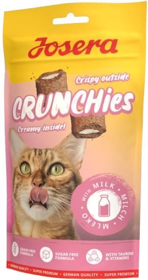 Josera Crunchies dla kota - Milk Chrupiąca przekąska dla kotów z mlekiem wypełniona kremowym nadzieniem Chrupiące na zewnątrz, kremowe w środku: niskokaloryczne przysmaki dla kotów na każdy dzień Bezzbożowa receptura Z cennymi witaminami i tauryną Z efektem odkłaczania dzięki zawartości błonnika …