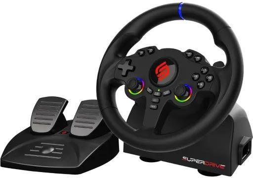 Kierownica gamingowa z pedałami i LED - PS5 i PC Realistyczne prowadzenie i precyzyjna kontrola Zanurz się w emocjach wyścigowych z kierownicą gamingową stworzoną dla graczy PS5 i PC. Dzięki kątowi obrotu 180° oraz średnicy 22 cm, kierownica wiernie odwzorowuje ruchy, oferując realistyczne doświadczenia z jazdy. Wbudowane podwójne joystickioraz programowalne przyciski pozwalają dostosować sterowanie do własnych potrzeb, a system wibracji sprawia, że poczujesz każdy zakręt i nierówność toru. Podświetlenie LED RGB dodaje nowoczesnego charakteru i gamingowego klimatu, który idealnie wpasuje się w Twoje stanowisko. Wygoda, personalizacja i kompatybilność Ta kierownica to nie tylko efektowny wygląd, ale też funkcjonalność. Regulowana czułość umożliwia dopasowanie sterowania do preferencji, a zestaw pedałów do przyspieszania i hamowania gwarantuje jeszcze większy realizm. Solidna konstrukcja i elegancki, sportowy design sprawiają, że to urządzenie doskonale pasuje do każdego gamera. Idealny wybór dla tych, którzy oczekują precyzji, komfortu i świetnych wrażeń w grach wyścigowych. Parametry techniczne Kompatybilność: PS5, PC Średnica kierownicy: 22 cm Kąt obrotu: 180° Podświetlenie: LED RGB Joysticki: podwójne (dual sticks) Funkcje: wibracje, programowalne przyciski, regulowana czułość (adjustable sensitivity) System pedałów: przyspieszanie i hamowanie Design: sportowy, nowoczesny, gamingowy