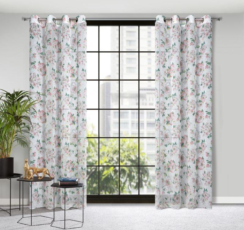 Zasłona z etaminy 140X250 delikatny wzór kwiatów kółka Aukcja dotyczy sprzedaży jednej sztuki Dekoracja okienna EMI z lekkiej etaminy w stylu eko z motywem kwiatowym prezentuje się we wnętrzu świeżo i nowocześnie. Półprzezroczysta tkanina pokryta deseniem kwiatów w różowej kolorystyce na białym …
