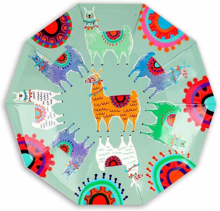 - zestaw papierowych talerzyków z limitowanej kolekcji Lama - ozdobione kolorowym motywem z wizerunkiem lamy - średnica talerzyka: 18,3 cm - opakowanie zawiera 6 sztuk