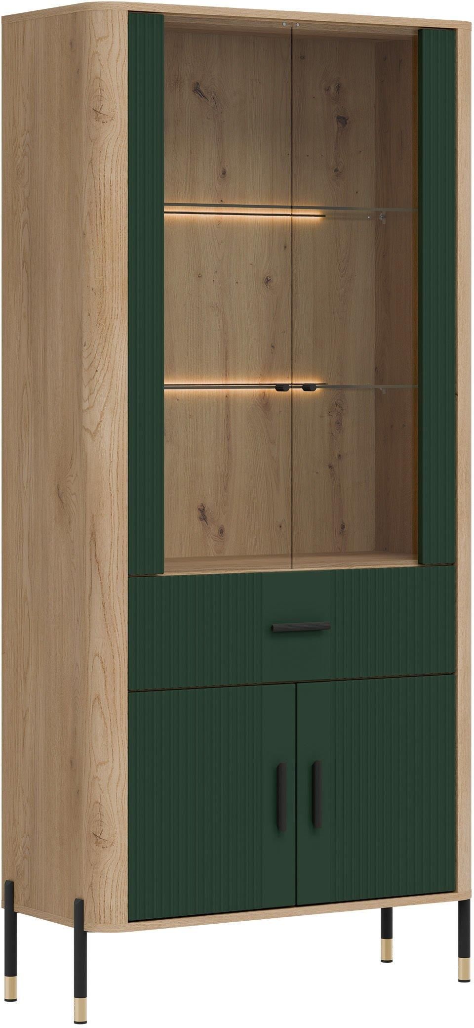 Liveo Witryna Wysoka Dante Dt14 4D1S Dąb Cremona Torro / Zielony Mat Czarny Uchwyt 187Cm Rzepin