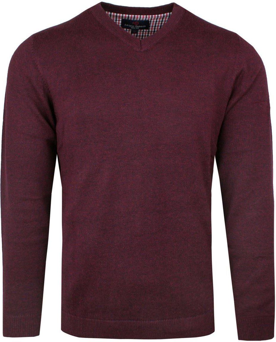 Adriano Guinari Męski Klasyczny Sweter W Serek V-Neck Bordo Rzeszów