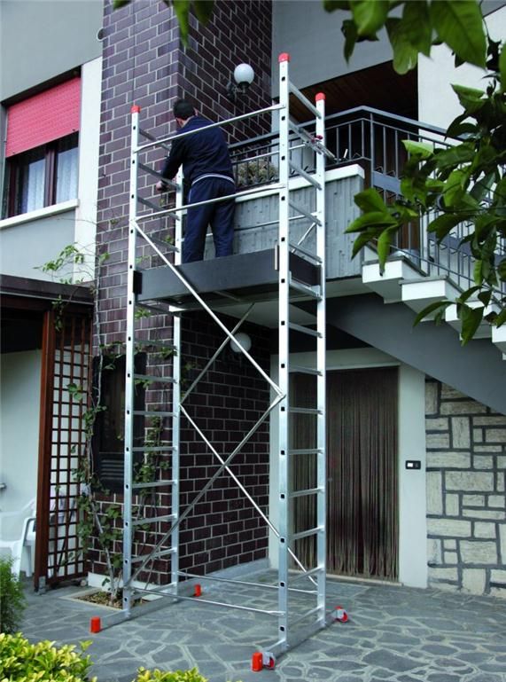 Rusztowanie aluminiowe przejezdne ZEUS / AK400 o wysokości roboczej 5,00m Wysokość rusztowania: 4,00m Maksymalna wysokość podestu: 3,00m Maksymalna wysokość robocza: 5,00m Wymiary pola rusztowania: 60 x 140cm Wymiary podestu: 50 x 125cm Dopuszczalne obciążenie: 100kg Przeznaczone do prac lekkich Niewielkie wymiary po złożeniu Podest rusztowania wyposażony w właz wejściowy Rusztowanie wyposażone w dwie rolki jezdne Konstrukcja posiada dwa szerokie stabilizatory Najważniejsze zalety rusztowania AK400 / ZEUS 1. Szybki montaż elementów składowych bez użycia narzędzi. Ramy wykonane z podłużnic o przekroju prostokątnym. 2. Możliwość regulacji wysokości pomostu co 28cm. Podest zakończony jest specjalnymi zaczepami zabezpieczającymi. 3. Pomost z lukiem wejściowym wykonany z wodoodpornej sklejki antypoślizgowej o wymiarach 120 x 50cm. 4. Rolki jezdne ułatwiające przesuwanie, rusztowanie może być przesuwane w stanie zmontowanym jak taczka. 5. Rusztowanie wyposażone jest w dwa długie stabilizatory gwarantujące większą stabilność konstrukcji. *Do rusztowania zależnie od wariantu konstrukcji należy stosować ciężarki balastowe lub łączniki kotwiące. Należy przestrzegać instrukcji montażu i użytkowania. Kompaktowe wymiary transportowe Rusztowanie AK400 zostało zaprojektowane w taki sposób aby jego przechowywanie oraz transport nie stanowiły problemu. Dlaczego warto wybrać rusztowanie AK400 / ZEUS? WYSOKA JAKOŚĆ WYKONANIA - nasze rusztowania pochodzą z jednej z najnowocześniejszych fabryk w Europie i są produkowane z wysokiej jakości profili aluminiowych, wysoka jakość to dla producenta jeden z najważniejszych priorytetów. MOCNIEJSZY PROFIL - specjalnie zaprojektowany profil aluminiowy został dobrany tak aby rusztowanie było bezpieczne. Dzięki takiemu rozwiązaniu zastosowany profil jest 2x mocniejszy od standardowych profili używanych w rusztowaniach. Galeria zdjęć