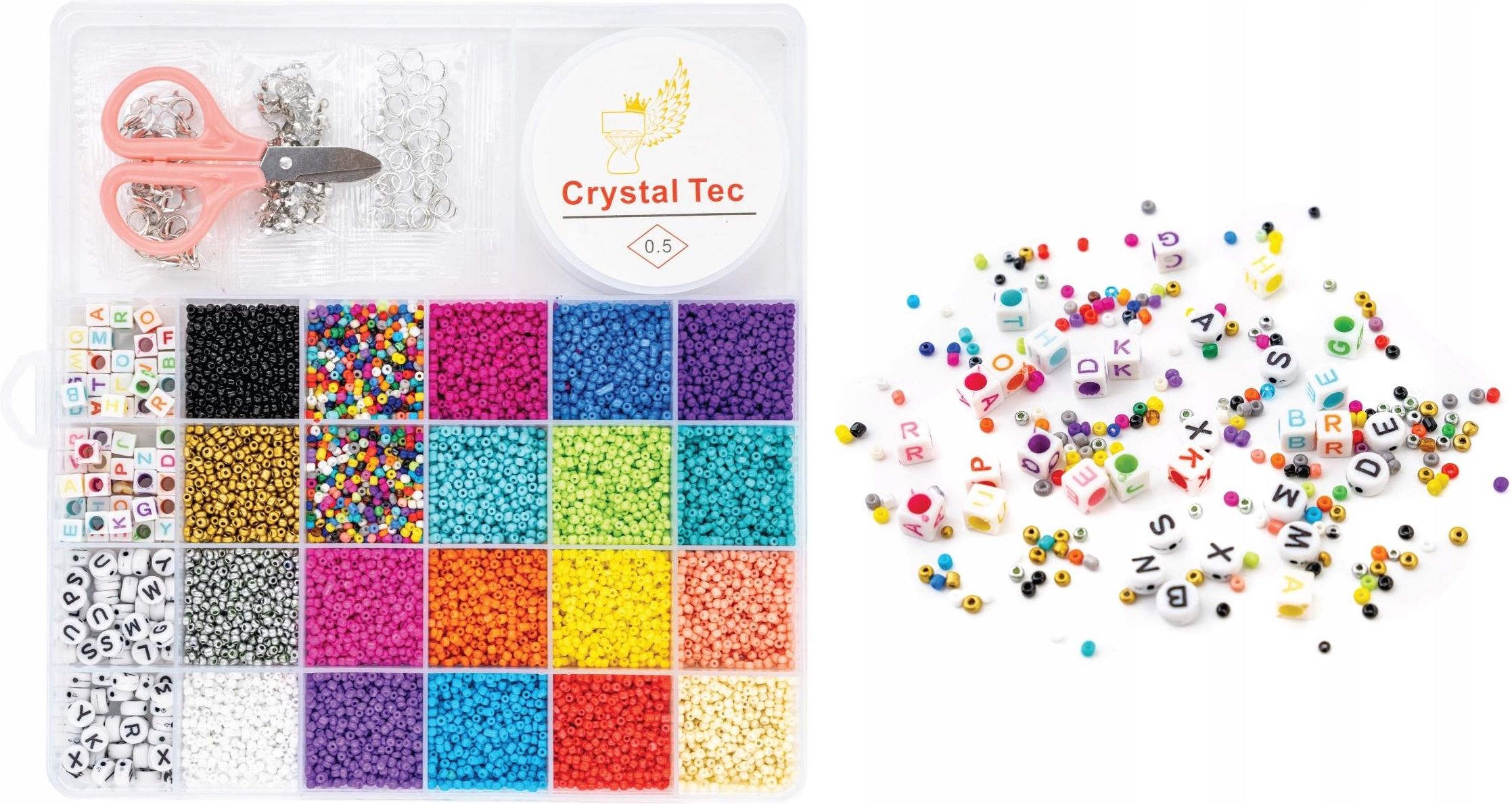 Prezentowany zestaw to prawdziwe skarby dla osób twórczych, którzy pragną dodać elegancji i blasku swoim projektom rękodzielniczym. Zawiera aż 24 różne kształty i kolory. To zapewnia niesamowitą paletę możliwości i kreatywności w Twoich projektach. Koraliki z otworem o wymiarach 2mm są łatwe do nawlekania na różne rodzaje nici czy drutów. W opakowaniu znajdują się wszelkie elementy pozwalające stworzyć bransoletki, naszyjniki czy breloczki. Zestaw jest dostarczany w praktycznym, zamykanym pudełku, które pomaga w utrzymaniu koralików w porządku i gotowości do użycia. Idealne do tworzenia biżuterii, ozdabiania odzieży, wykonywania ozdób do włosów, dekoracji dla domu i wiele innych projektów DIY. Niezależnie od tego, czy jesteś początkującym twórcą, czy doświadczonym projektantem, koraliki są doskonałe do każdego poziomu umiejętności. Zestaw zawiera: koraliki 2mm, otwór 0,8 mm, mix 20 kolorów x 10g koraliki z literkami 7 mm, otwór 1mm, 2 przegródki x 35 sztuk koraliki z literkami 6 x 6 x 6 mm, otwór 3,5 mm, 2 przegródki x 30 sztuk 20 zapięć 50 ringów 40 zacisków żyłkę elastyczną, silikonową 5mm o dł. 10m nożyczki