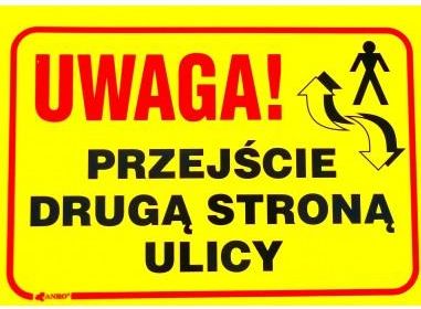 Anro Znak Uwaga Przejście Drugą Stroną Ulicy 25X35cm Anro, Art.B12 Rzeszów