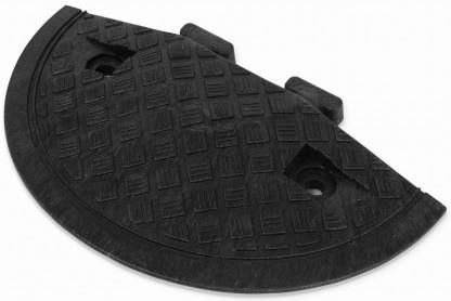 Próg zwalniający Długość progu: 20cm Długość najazdowa: 36cm Wysokość: 4cm W skład kompletu: wchodzi 1 element półokrągły końcowy czarny waga: 0,5kg Właściwości: Próg doskonale sprawdza się na drogach wewnętrznych, firmowych oraz parkingach. Próg zwalniająco- podrzutowy tzw. ,,leżący policjant" …